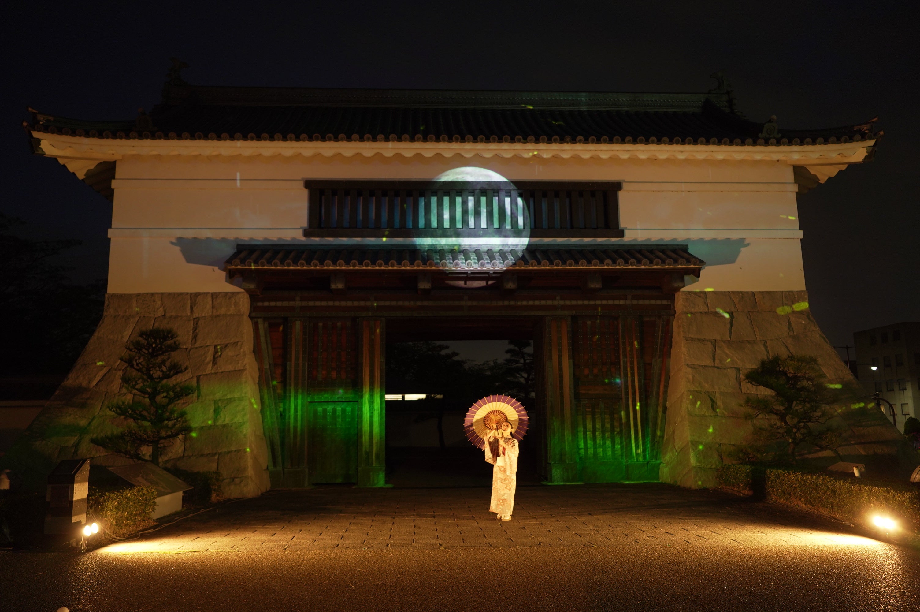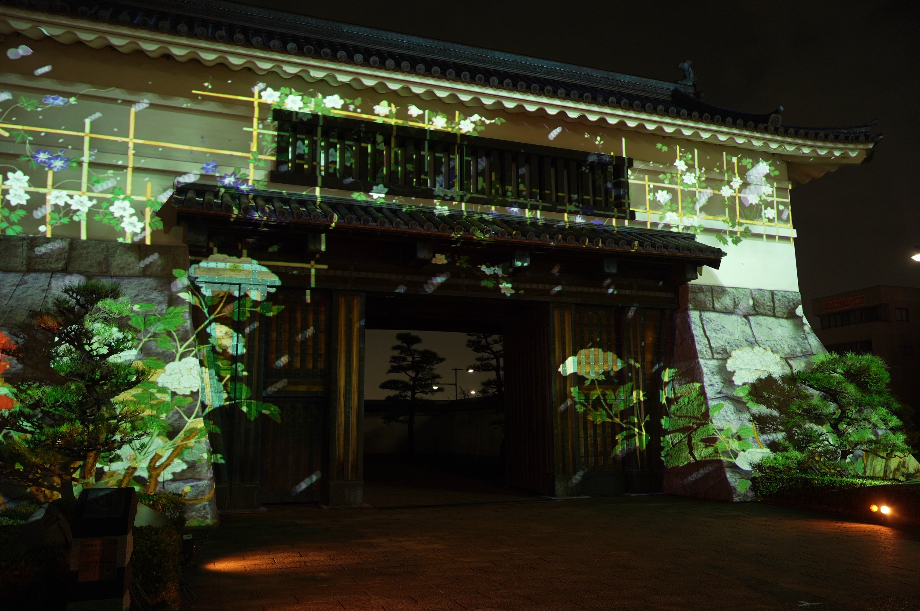 五万石藤まつり開催期間中の2日間、徳川家康生誕の地・岡崎城の表玄関・大手門に岡崎市が誇る藤の花や岡崎市の伝統産業・三河花火、現代的なデジタルアートコンテンツなど豪華絢爛な映像を投影。