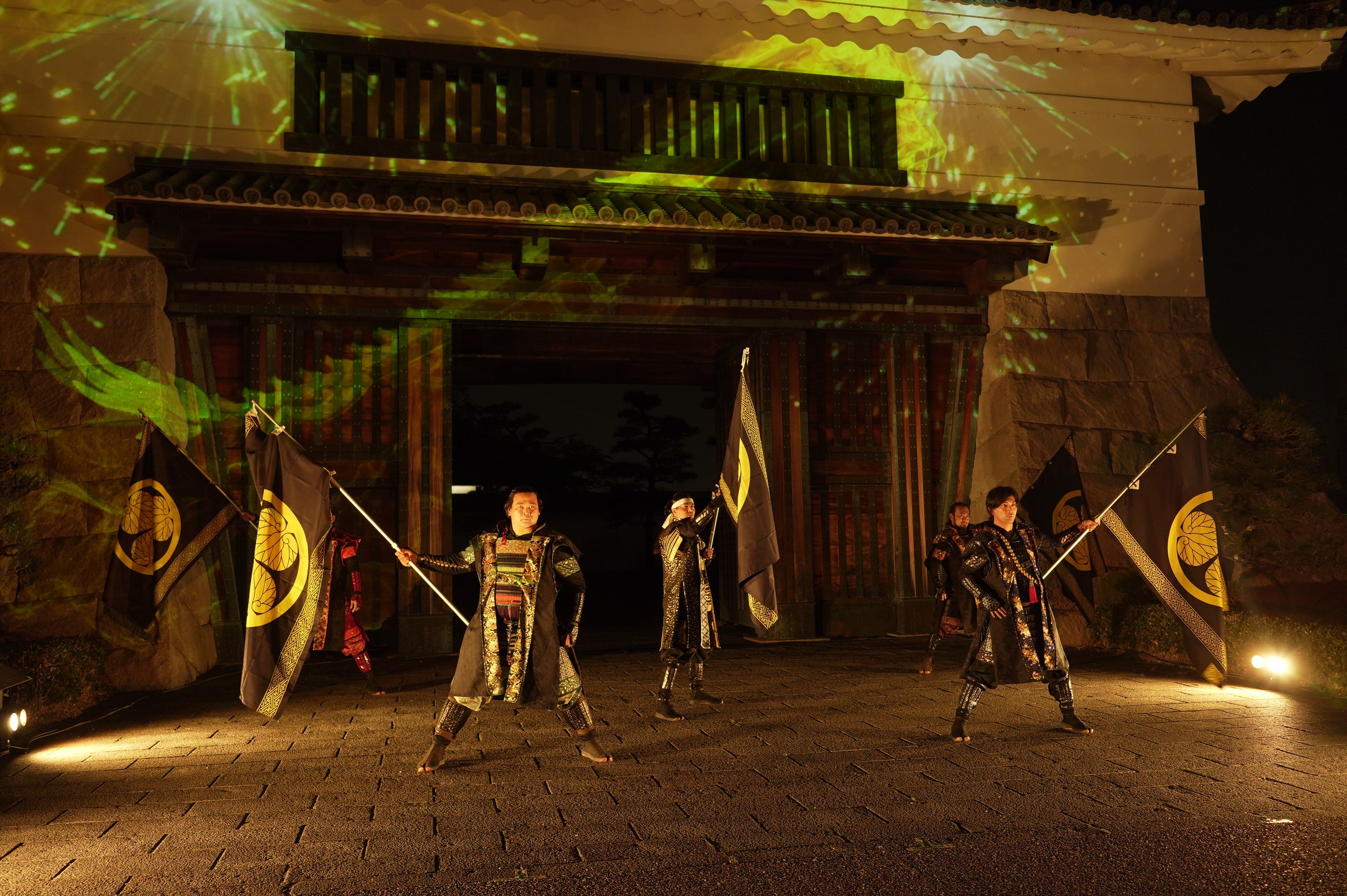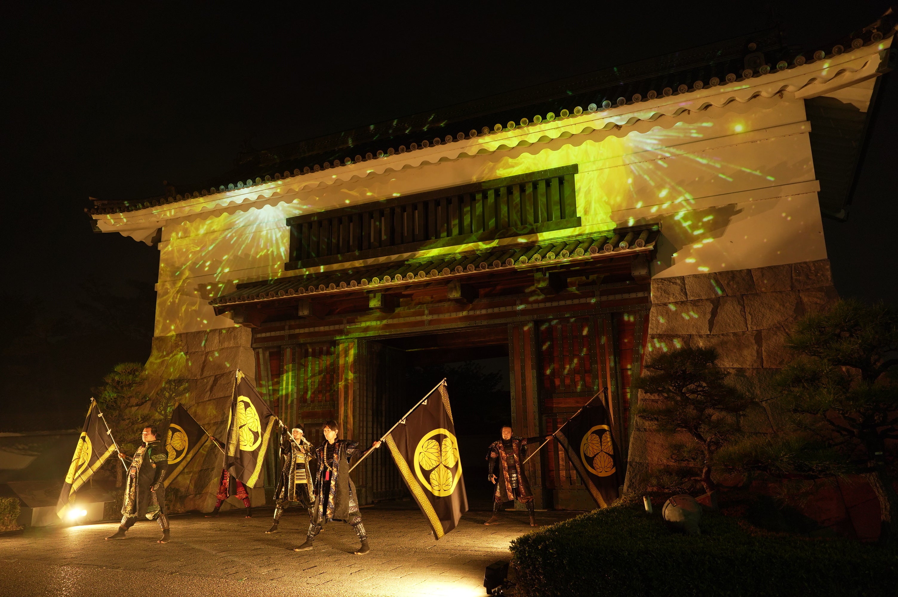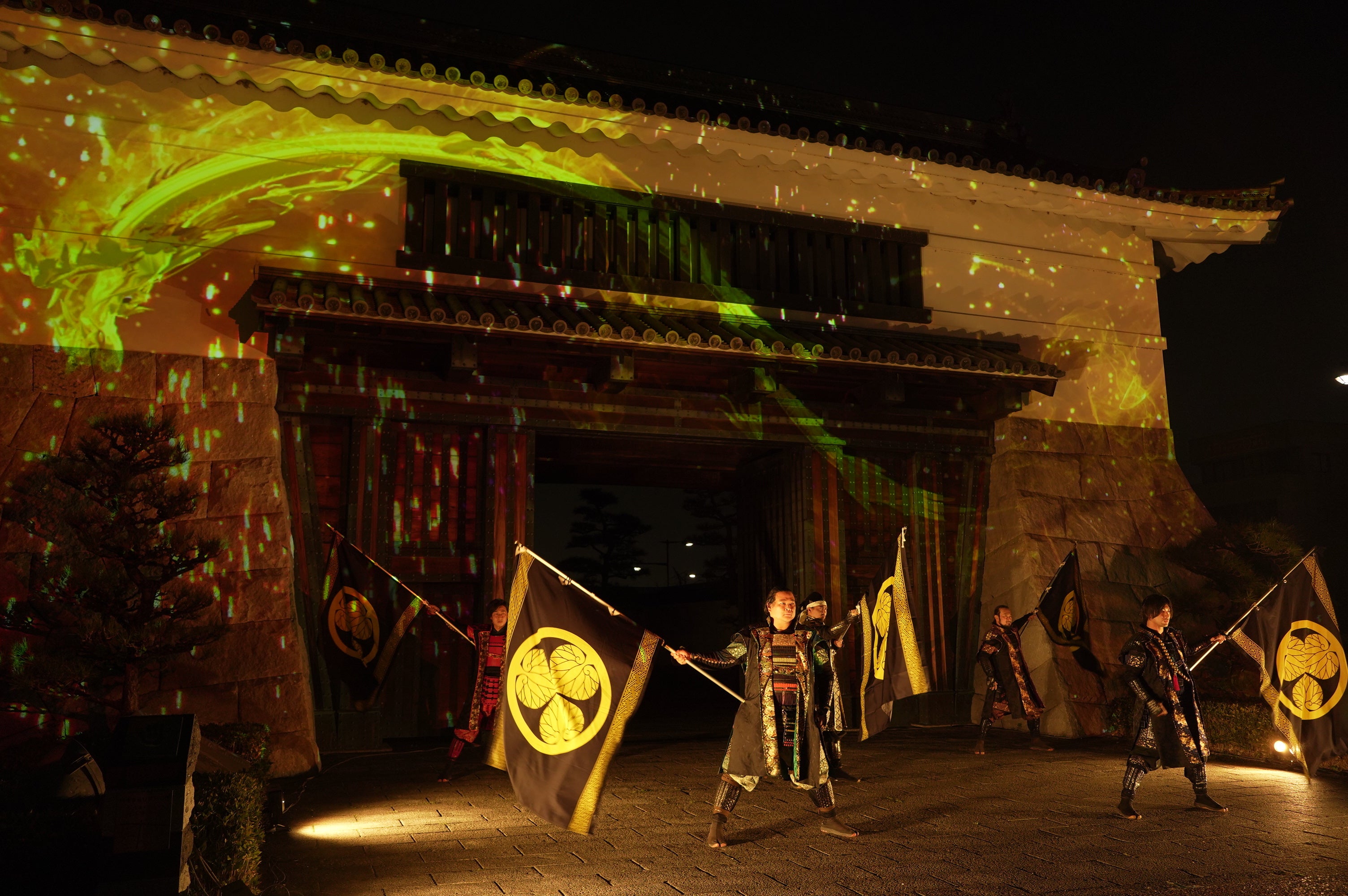 初回の投影はグレート家康公「葵」武将隊の演武とのコラボレーションによるスペシャルバージョンを行います。(以降約30分おきにスペシャルバージョンを行う予定です)