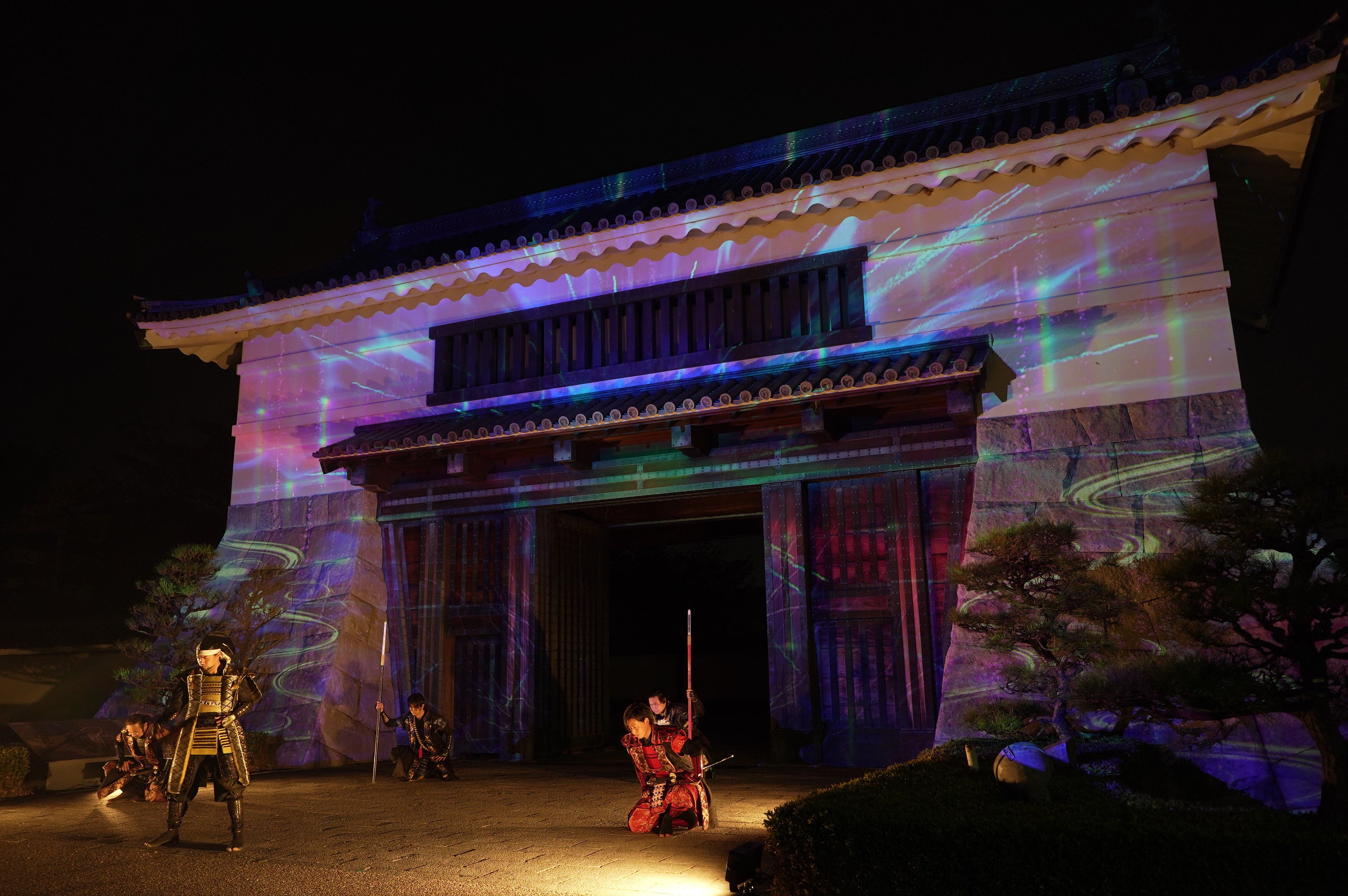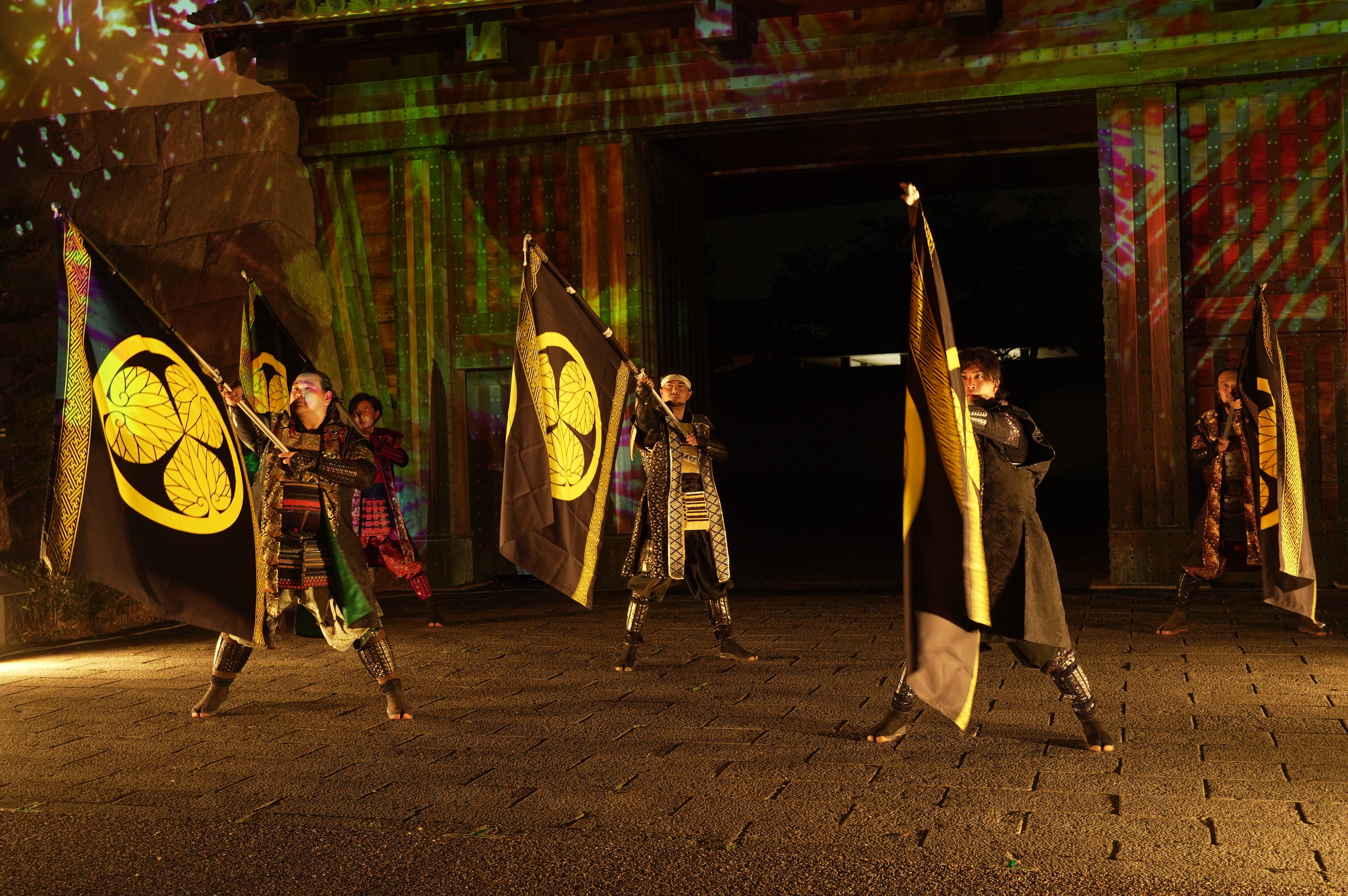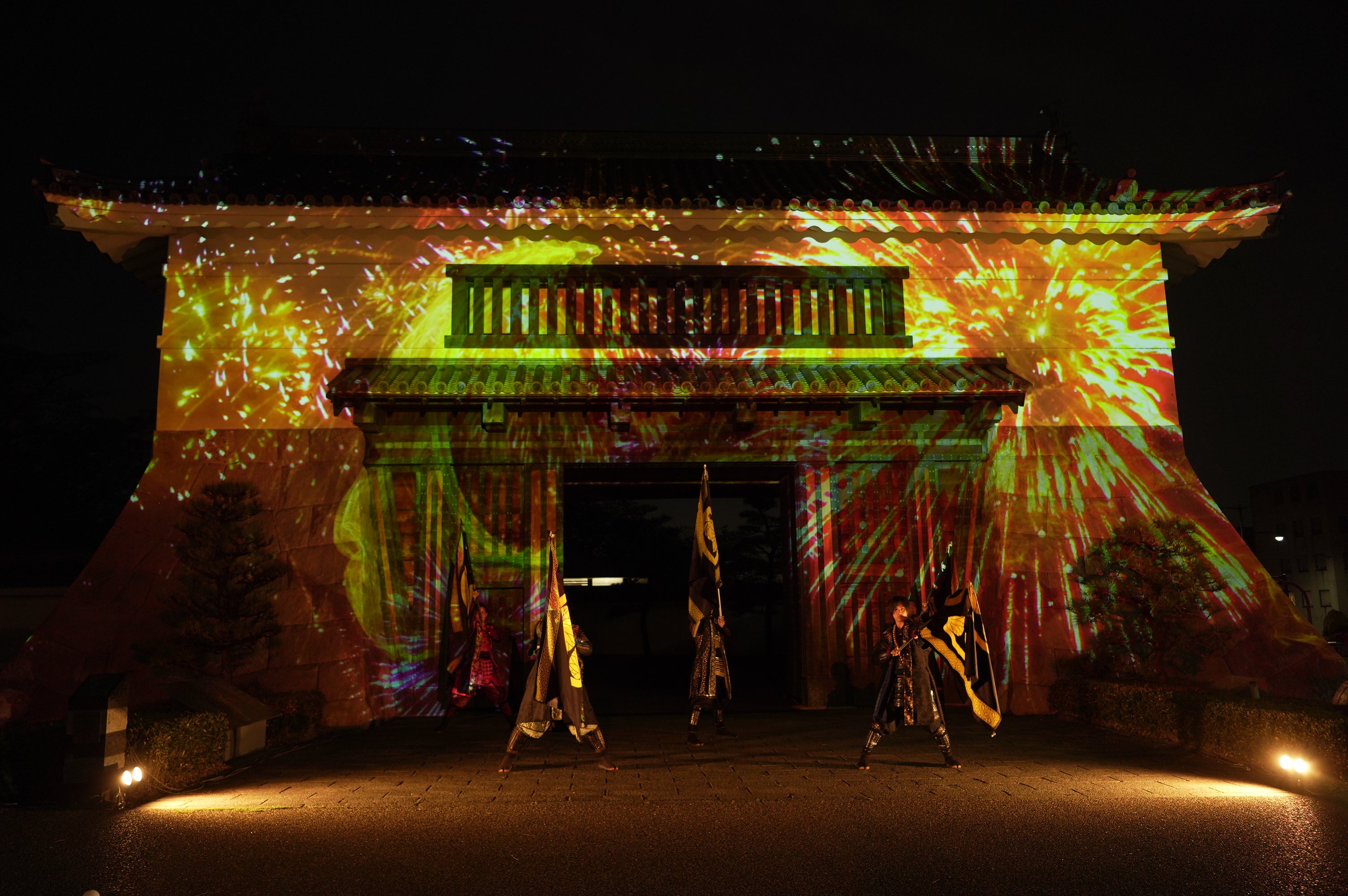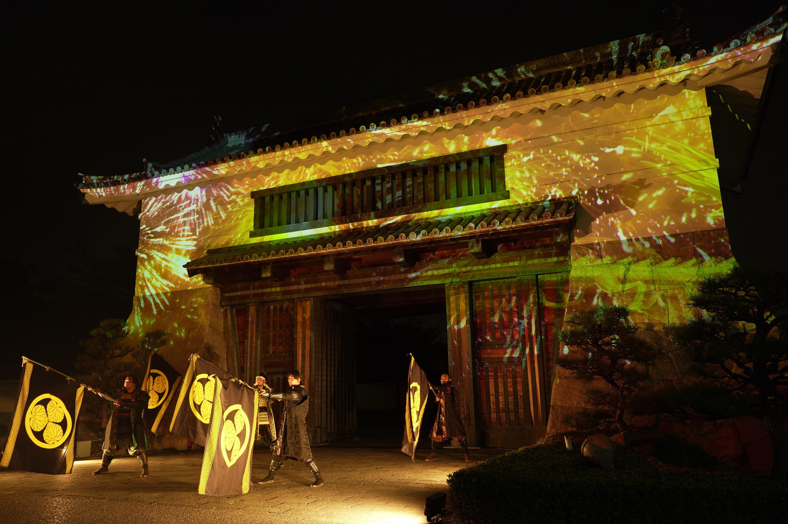 初回の投影はグレート家康公「葵」武将隊の演武とのコラボレーションによるスペシャルバージョンを行います。(以降約30分おきにスペシャルバージョンを行う予定です)