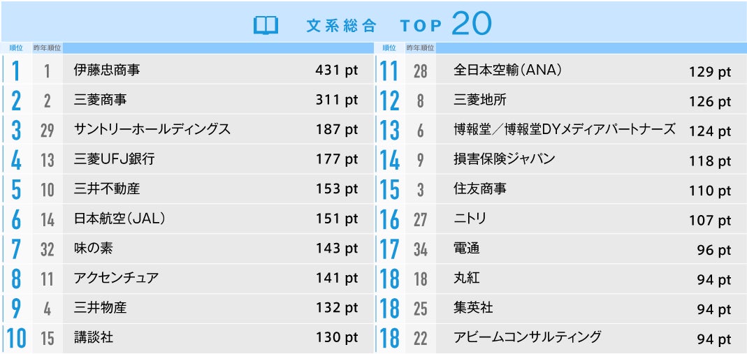【就職人気企業ランキング結果 文系総合】