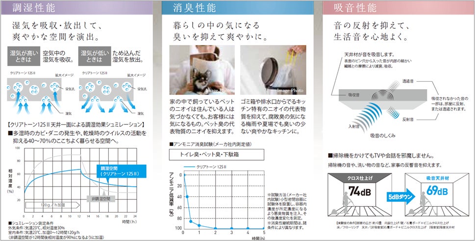建物は南向き・東向きの2棟構成とし、間取りは2LDK/44.88m2~3LDK/82.73m2をご用意しました。全戸のリビング・ダイニング・キッチンの天井(一部除く)には、吸音・消臭・調湿性能を併せ持つ天井材「クリアトーン12SII」を採用しました。音の反響が抑えられることで室内の音が聞き取りやすくなったり、暮らしの中のニオイを抑えたり、湿気の吸収・放出効果が期待できます。また、一部の住戸には、水道水の硬度成分を限りなく 0(ゼロ)近くまで取り除くことができ、お肌や髪に優しく、水アカ発生の軽減にも繋がる家庭用軟水器「軟太郎ソフティナⓇ」を導入しました。機能的な設備導入により、快適な暮らしをご提供いたします。