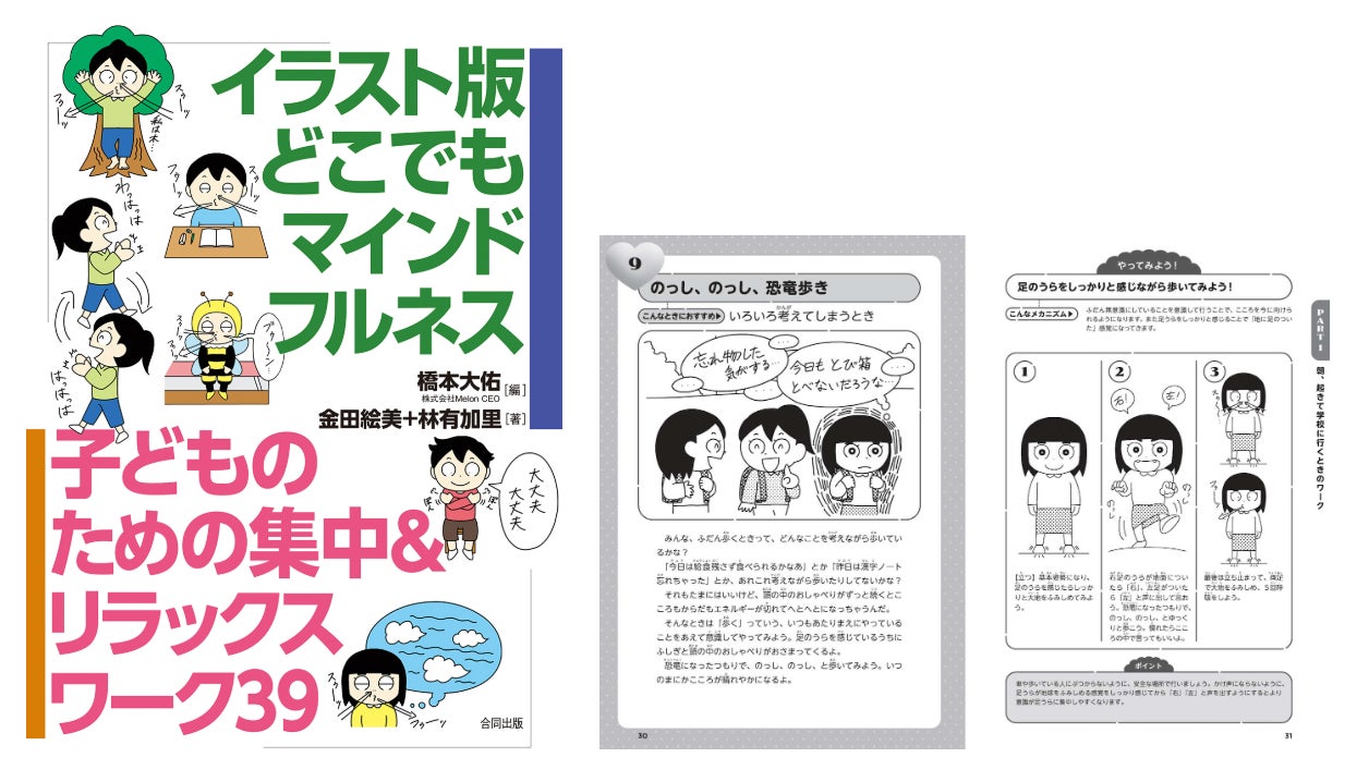マインドフルネスを応用して人・組織の「心と感情の課題」解決を支援する株式会社Melon(本社:東京都港区、代表取締役CEO:橋本大佑、以下「MELON」)は、2025年4月11日に『イラスト版 どこでもマインドフルネス 子どものための集中&リラックスワーク39』の発売いたしました。