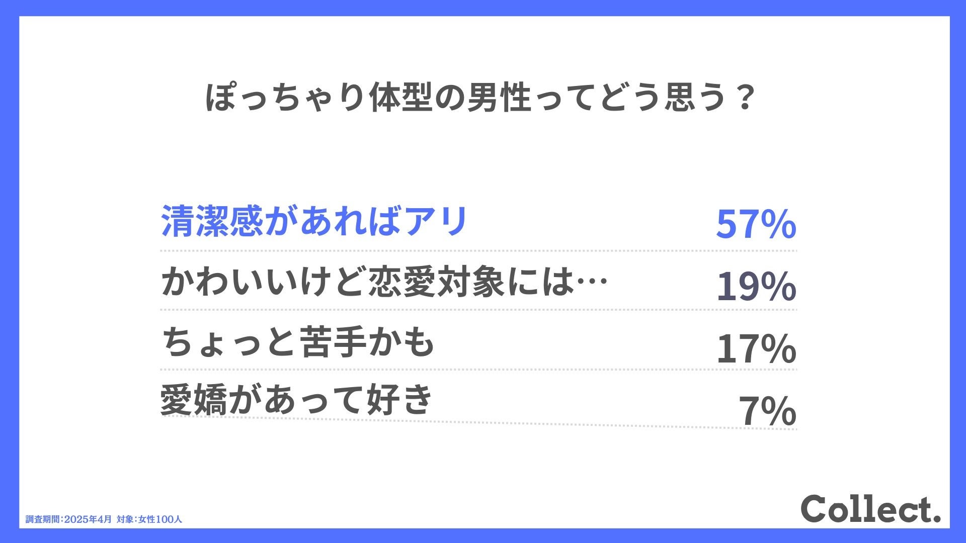 57%の方が「清潔感があればぽっちゃりでもOK」と回答