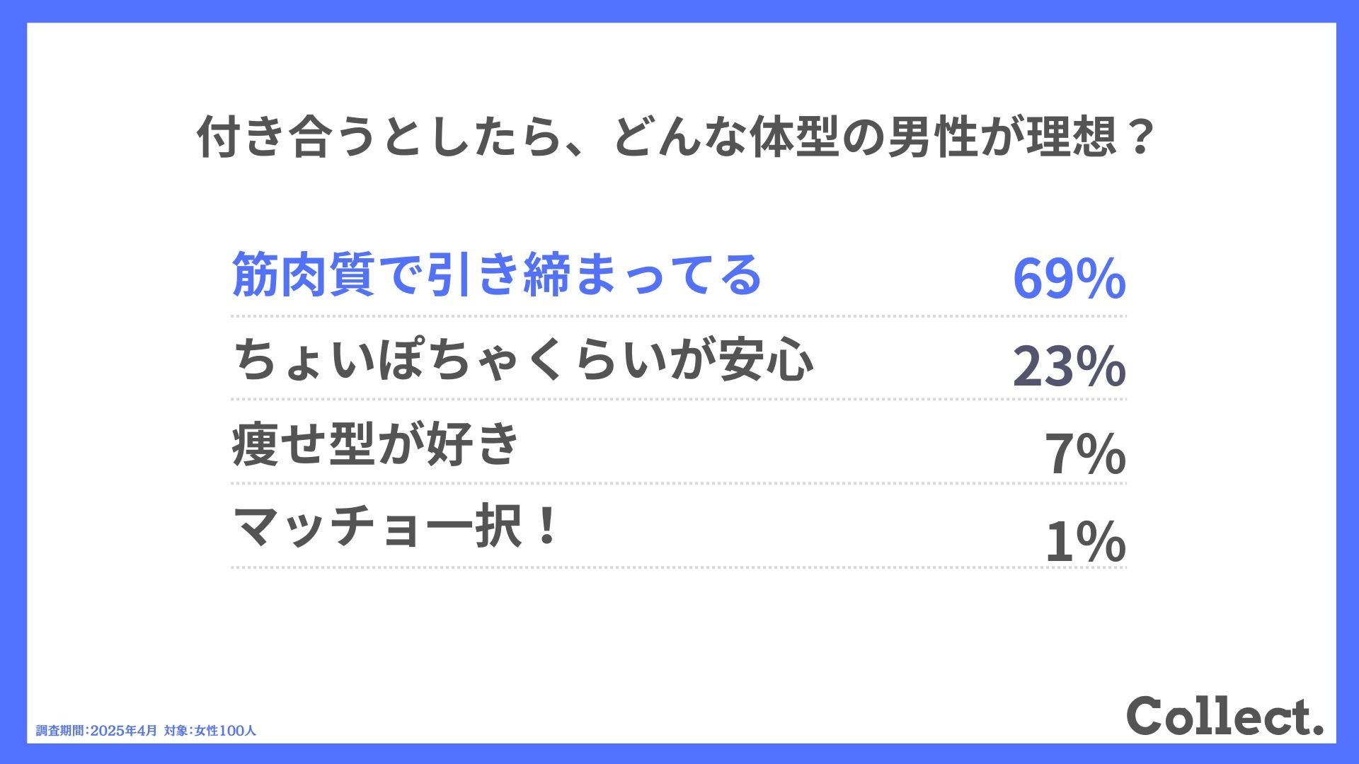 女性100人に聞いた「男性の体型」本音調査!理想は“筋肉質”でも…ぽっちゃりOKな理由とは?【Collect.(コレクト)】