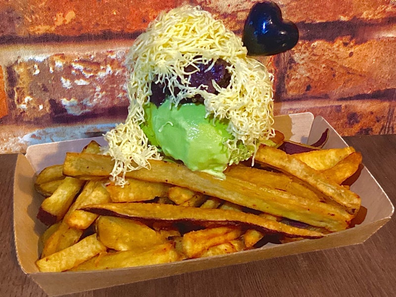 揚げたさつまいものフライドポテトの上に抹茶アイスとあんこ、バターをトッピング。味変で最後まで飽きずに食べられます♪