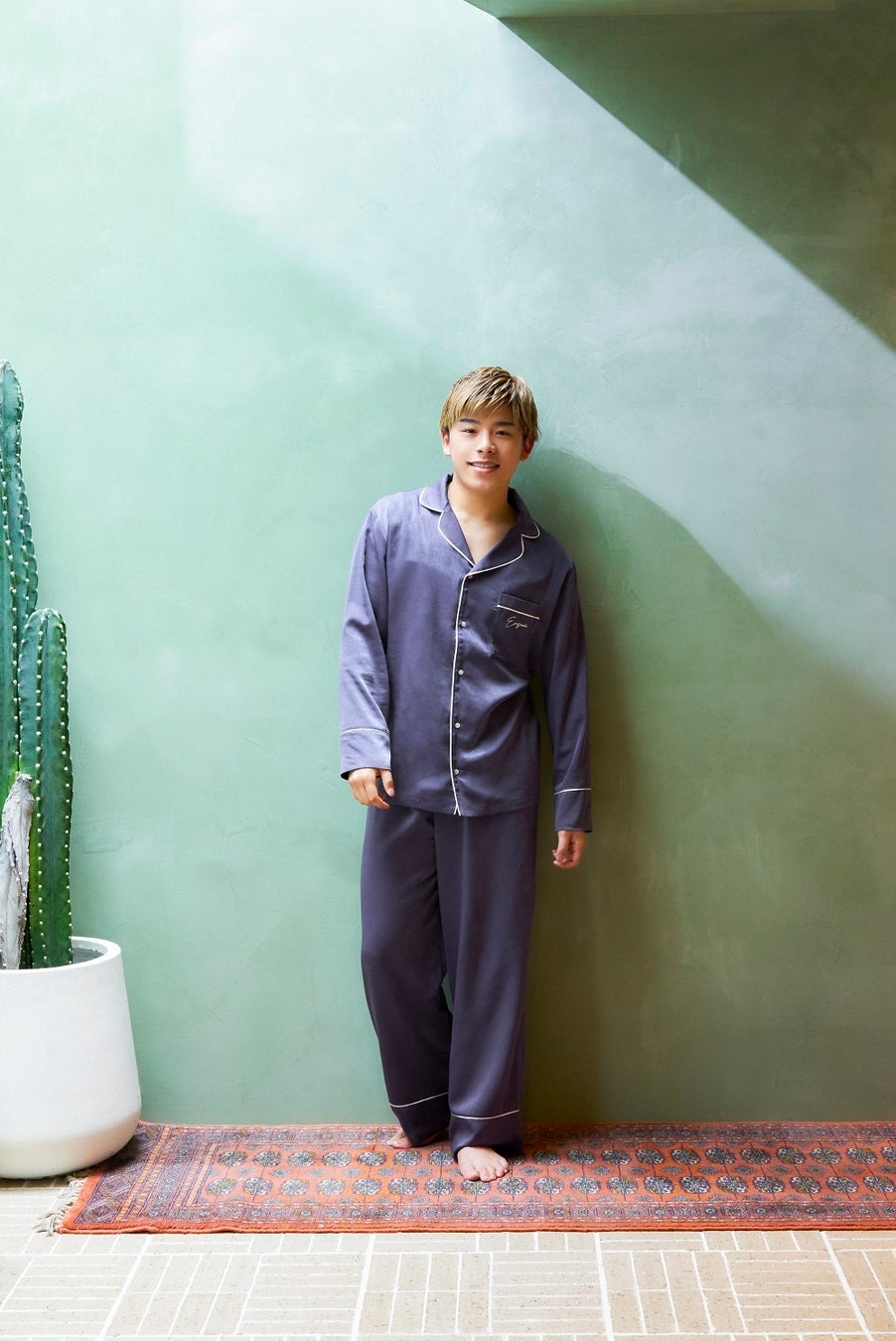 就寝時の着心地と素材にもこだわったパジャマは2人も大のお気に入り。撮影の時にも、「ツヤツヤの素材感が寝心地も抜群!」「くすみ系カラーの色味が最高♪」「トロっとした素材が高級感もあってGood!」と、大盛り上がりで、終始、その着心地の良さを味わっていた。