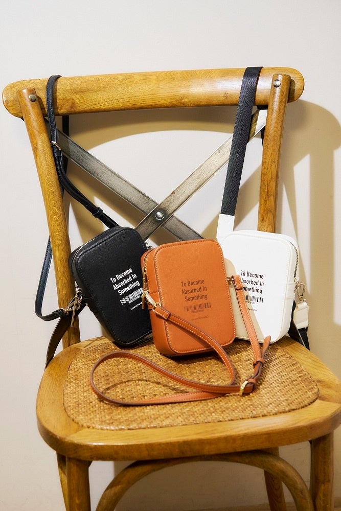 「To Become Absorbed In Someshing」のメッセージとバーコードが描かれたスタイリッシュなデザインのショルダーバッグ。『なこなこ』2人のこだわりで、コンパクトなサイズ感、コロンっとしたスクエアシルエット、性別問わず使用できるシンプルな仕上がりに。英語のメッセージには“あるものに夢中になる”という想いが込められている。バーコードの数字の意味にも注目。ショルダーベルトは華奢な細い同素材と、太めの2種類がセットになった機能面でも充実したデザイン。
