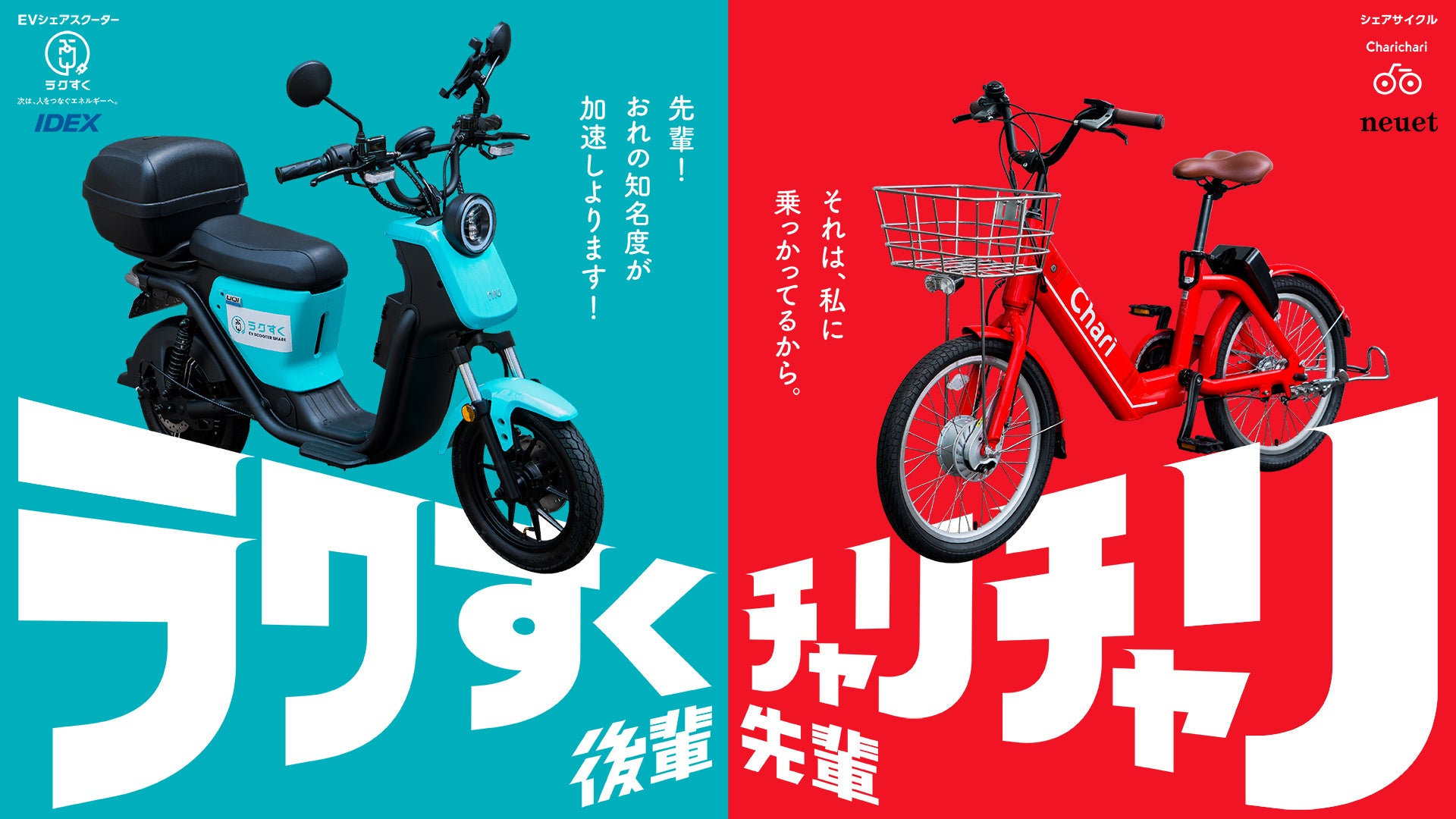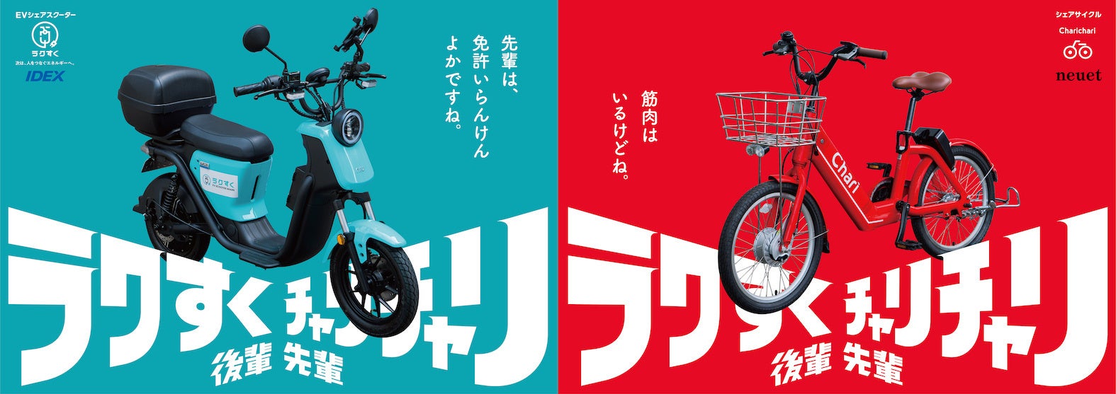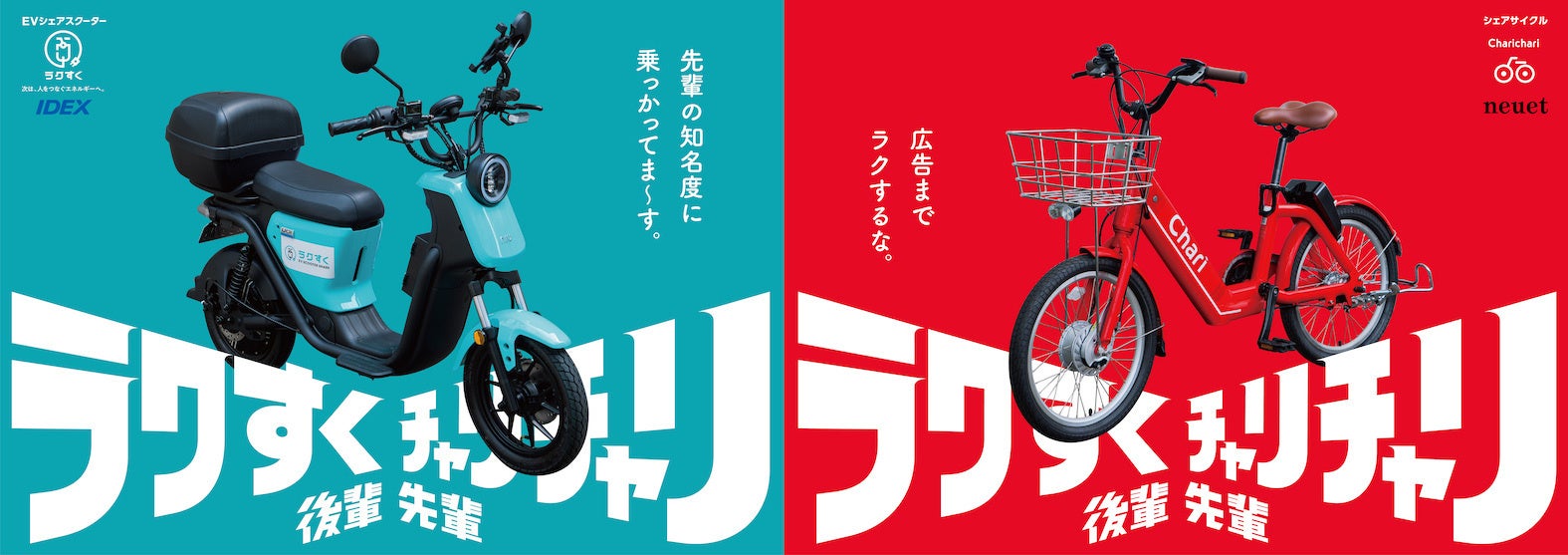 シェアサイクルサービス『チャリチャリ』、EVシェアスクーター「ラクすく」と同業種初のコラボビジュアルを展開