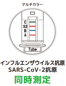 また、インンフルエンザウイルス(A型・B型)と新型コロナウイルスを同時測定できます。