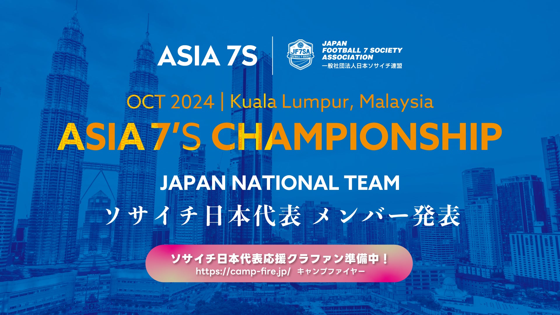 ASIA 7’s(ソサイチアジア連盟)が主催する第2回ソサイチアジア大会であるASIA 7’s Championship(10月:マレーシア開催)にソサイチ日本代表チームとして参戦いたします。