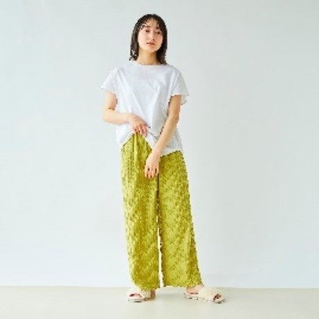 「”部屋着すぎず着回しできる”をテーマに色と素材、シルエットにこだわって作りました。何枚あってもいいと思えるパンツです。」
