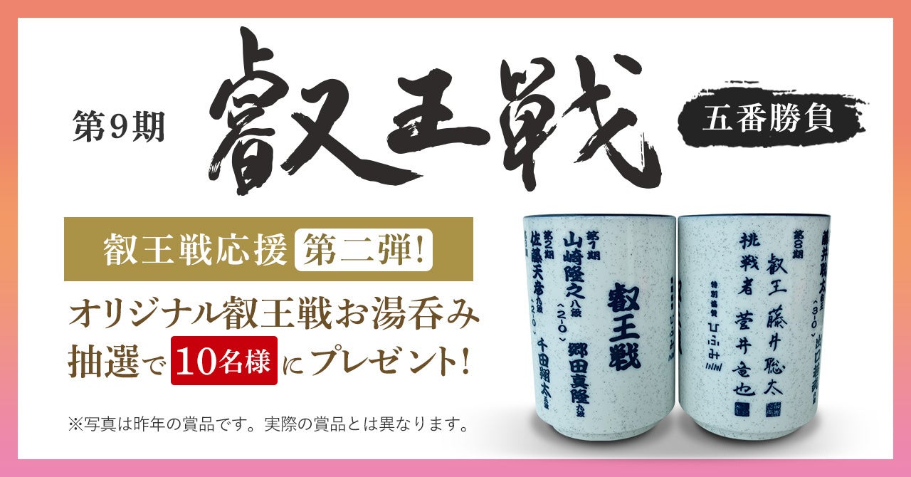 レオスが特別協賛する第9期叡王戦、熱いご要望にお応えし「叡王戦オリジナルお湯呑み」を抽選で10名様にプレゼント
