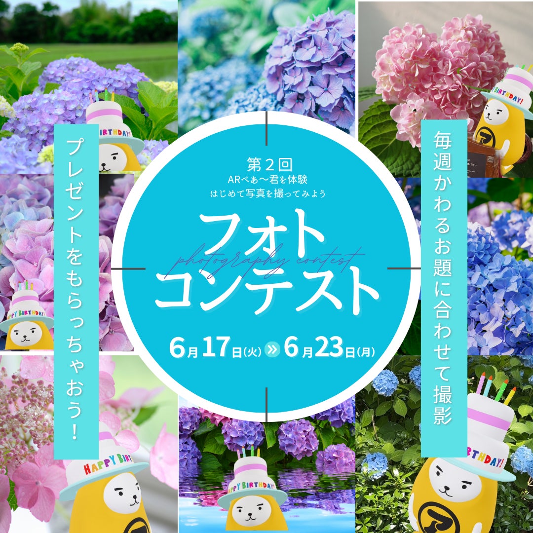 第2回目のテーマは「紫陽花」。お好きな場所で、3Dのべあ~君と紫陽花のある風景を撮影し、ハッシュタグ【#べあ君AR体験】を付けてInstagramまたはX(旧Twitter)に投稿するだけで応募が完了します。投稿者の中から抽選で1名様に、べあ~君から「ありがとう賞」としてプレゼントを贈呈いたします。さらに、入選作品は「べあ~君特設サイト」でもご紹介いたします。