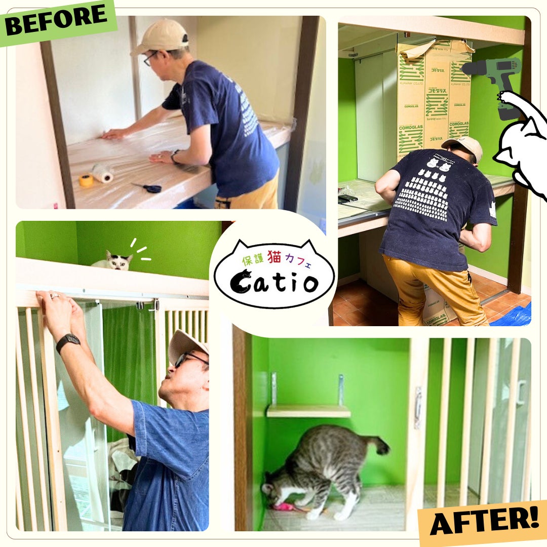 猫共存住宅といえばこの方!本イベントに向け、会場3階の保護猫カフェCatioさんを、自ら汗を流してプチ改装してくださいました。