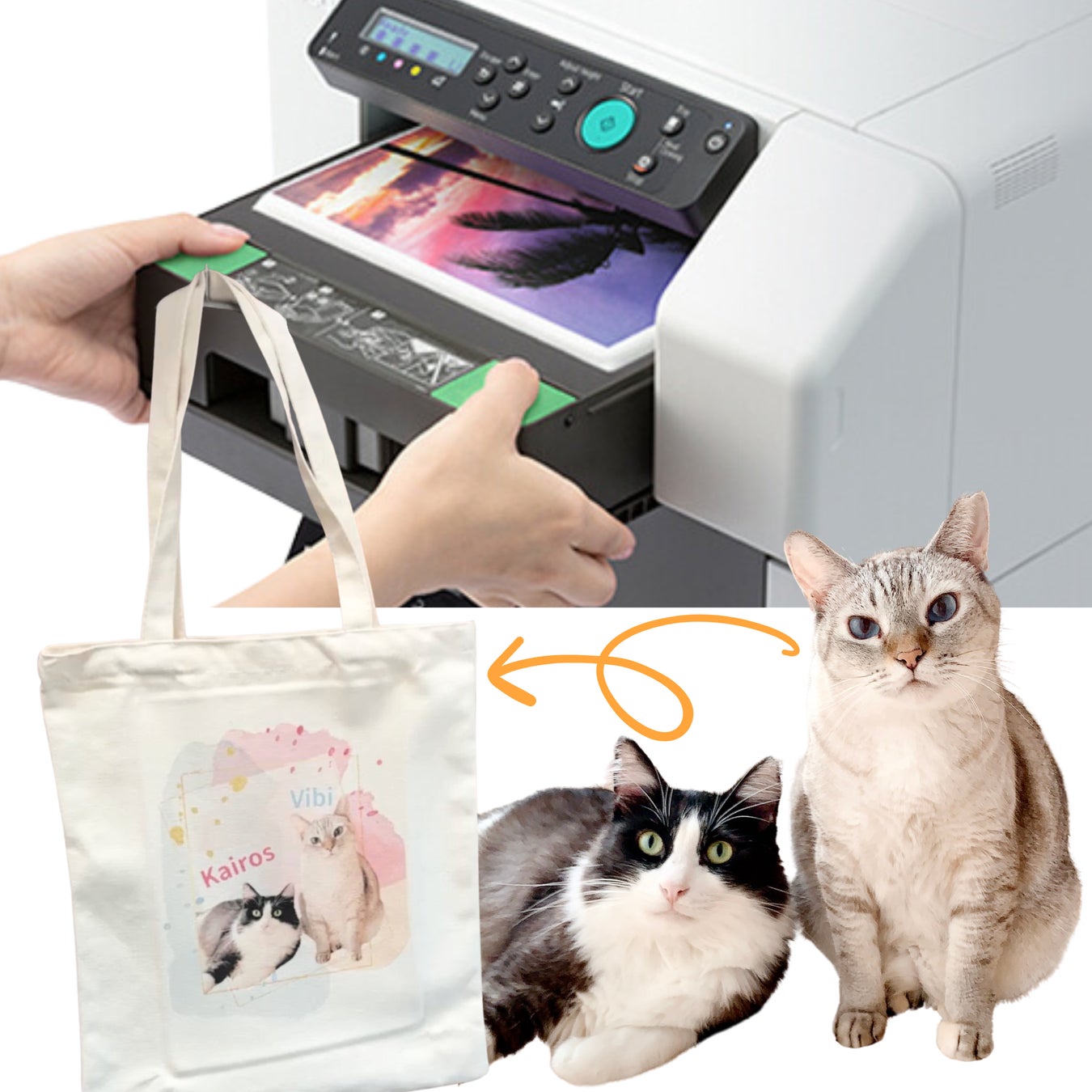 3FのCat ROOMでは、SUMIKA商品で遊んだりくつろいでくれている保護猫ちゃんたちに癒されつつ、1Fの会場ではお写真やイラストをそのままトートバッグに印刷するプリントサービスや、クリエーターさん、SUMIKA商品の展示販売も行う予定です。
