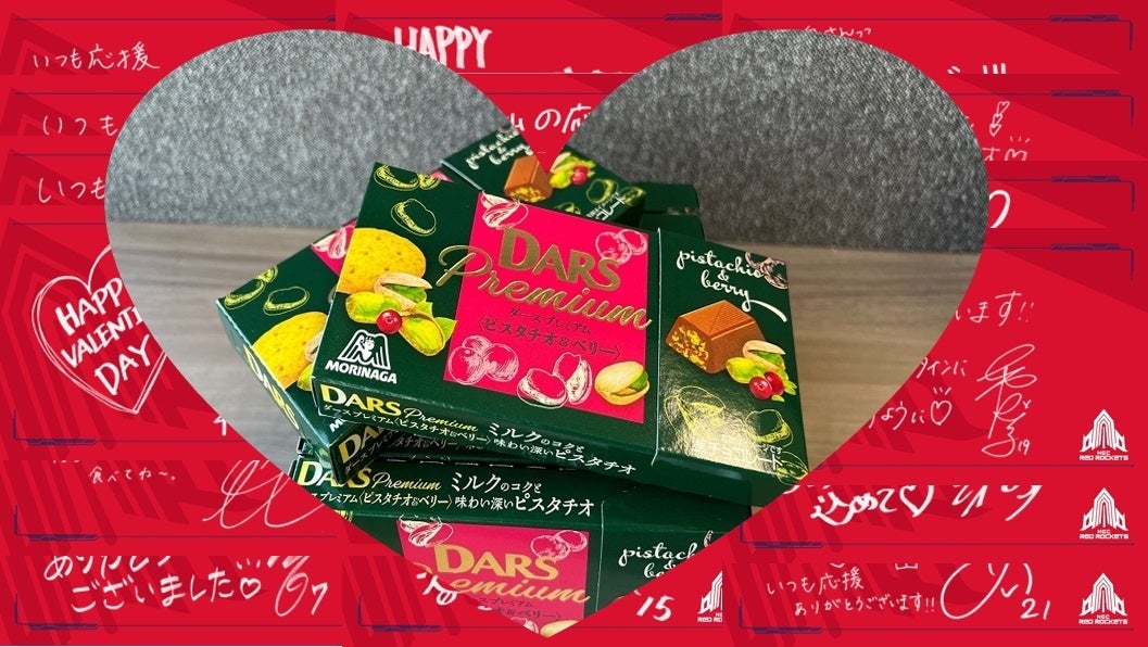 試合当日は、会場でしか見ることのできない、選手・スタッフからの「RED ROCKETS THANKS MOVIE」を放映するほか、CREW(ファンクラブ)会員様+中学生以下のお子様限定でメッセージカード付きの森永DARSチョコを先着450名様(各日)にプレゼントいたします。
