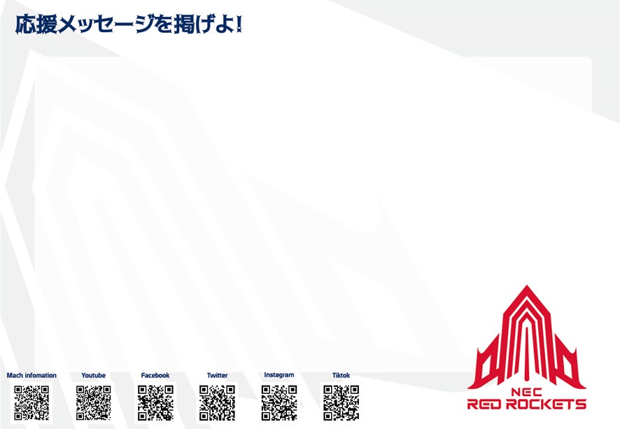 試合終了後に選手が会場を一周する際、ご記入いただいたメッセージを掲げて、選手にエールを送ってください!MAIN CREWと一つになりましょう!(ペンはご持参いただきますようお願いいたします)