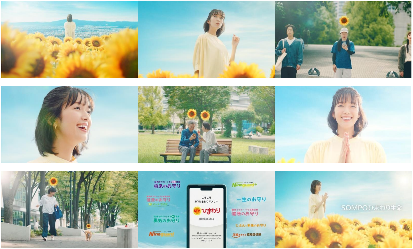 今回のCMは、「みなさんの健やかな毎日をサポートしたい」というひまわり生命の願いを、ひまわりがたくさん咲く丘の上から、軽快で前向きな曲とともに表現させていただきました。