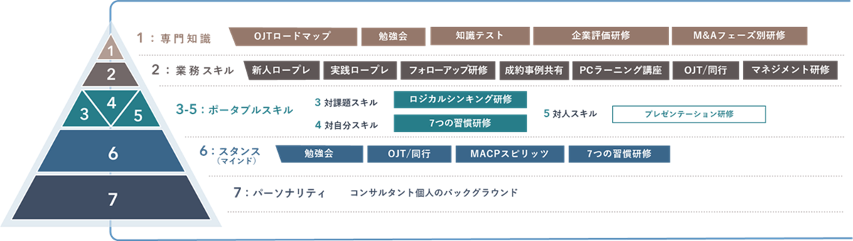 MACPでは創業から18期にわたり難易度が高い多くのM&Aを手掛け、象徴である大型案件創出の指標である株式譲渡の平均価格は約15.0億円と、他のM&A仲介業者に比べ圧倒的なM&Aアドバイザーの実績を有してまいりました。この圧倒的な実績を果たしてきた源泉がM&Aアドバイザーの「育成プログラム」です。この創業から18年かけて確立された「育成プログラム」こそが、新卒人財を育てることができる重要な証です。