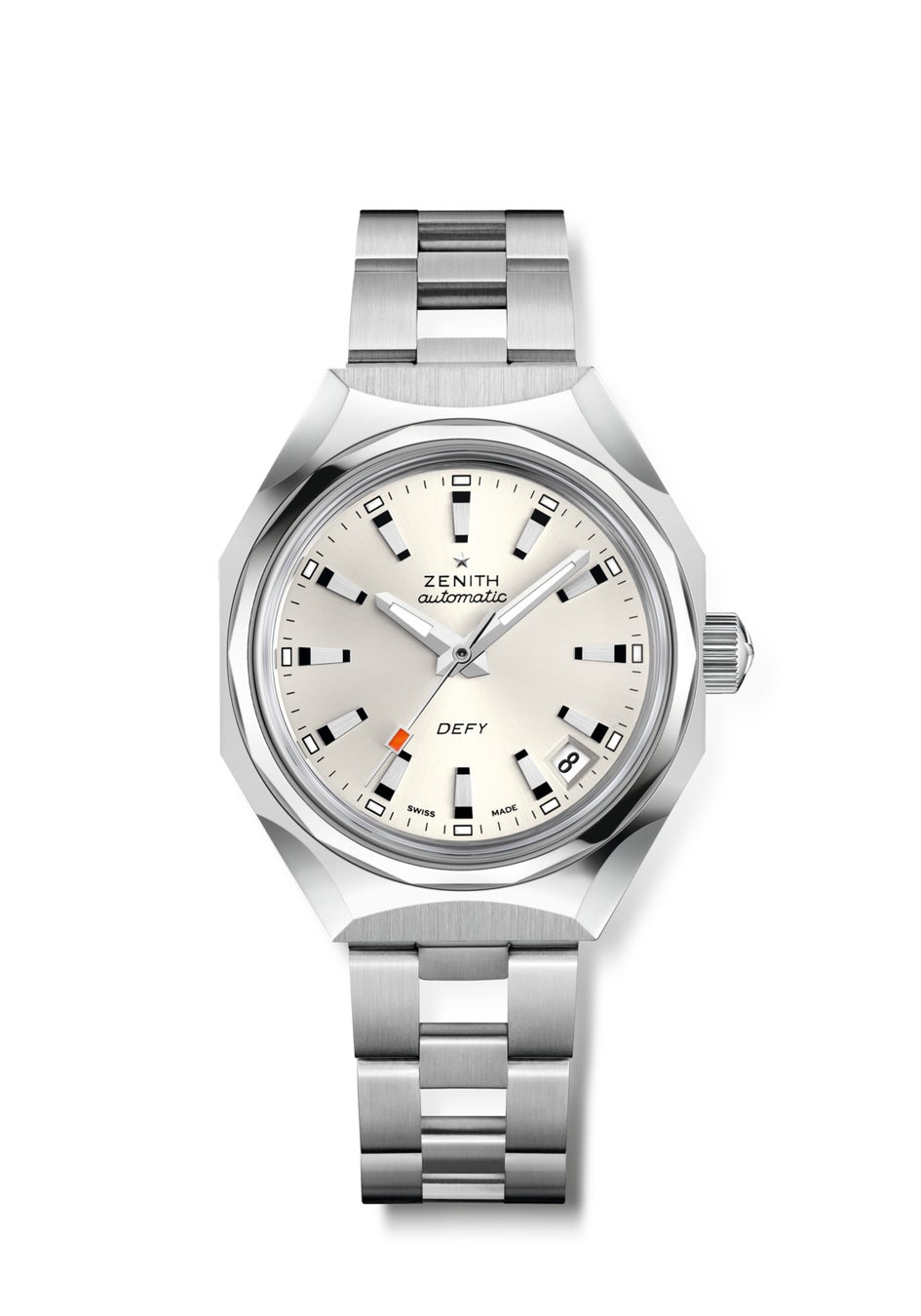 1969年はゼニスにとって決定的な転機でした。この年、マニュファクチュールは画期的なエル・プリメロ キャリバーを発表し、さらに、大胆な幾何学性と、構築的で一体感のあるデザイン、揺るぎない耐久性を追究するコレクション「デファイ」を発売したのです。「銀行の金庫」や「ボルト」の愛称で呼ばれたオリジナルモデルは、シャープなライン、ファセットカットを施した表面、建築的な存在感によって新たなデザインコードを確立しました。