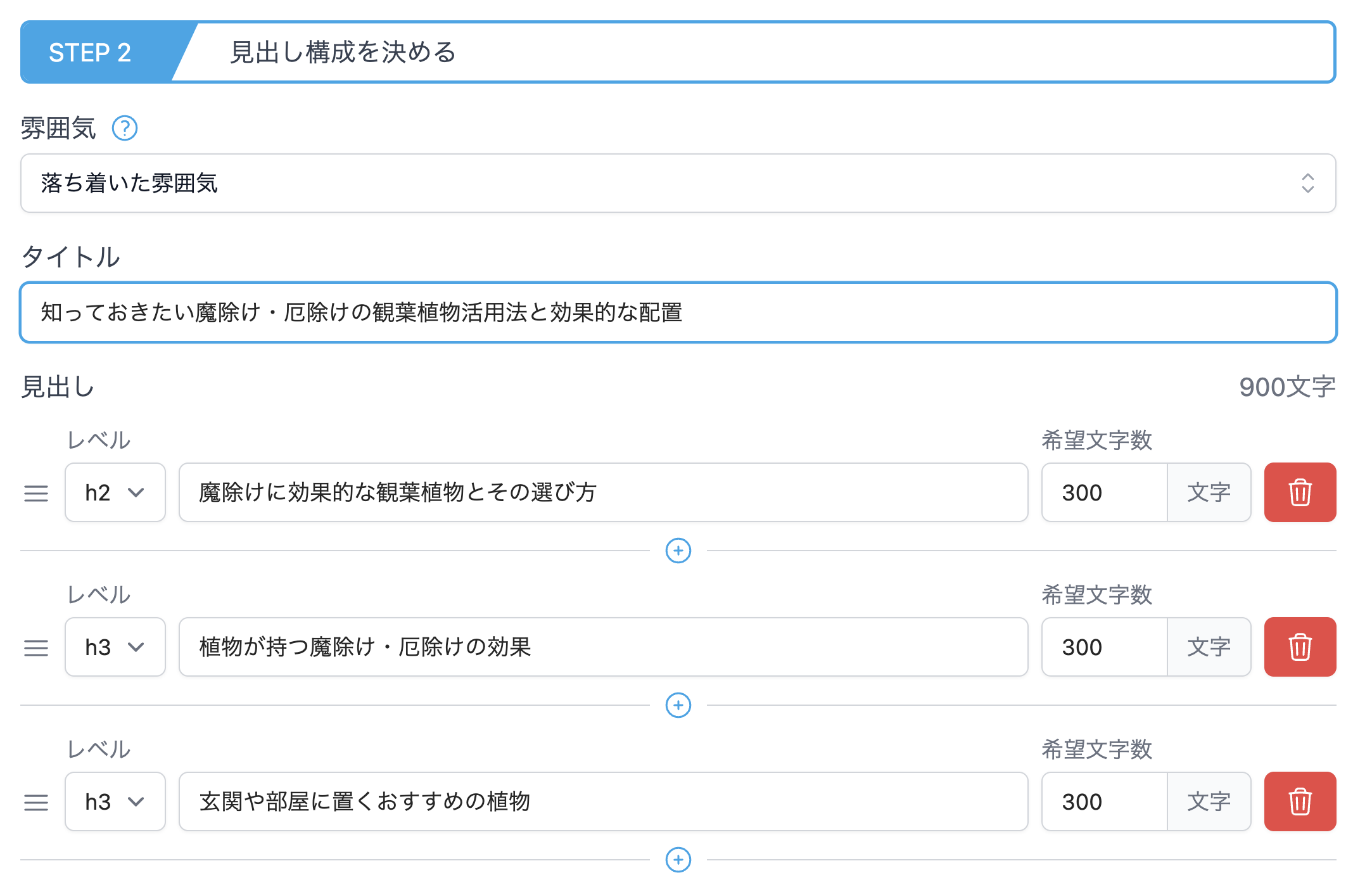 まず最初に、作成したい記事の概要を入力して下さい。