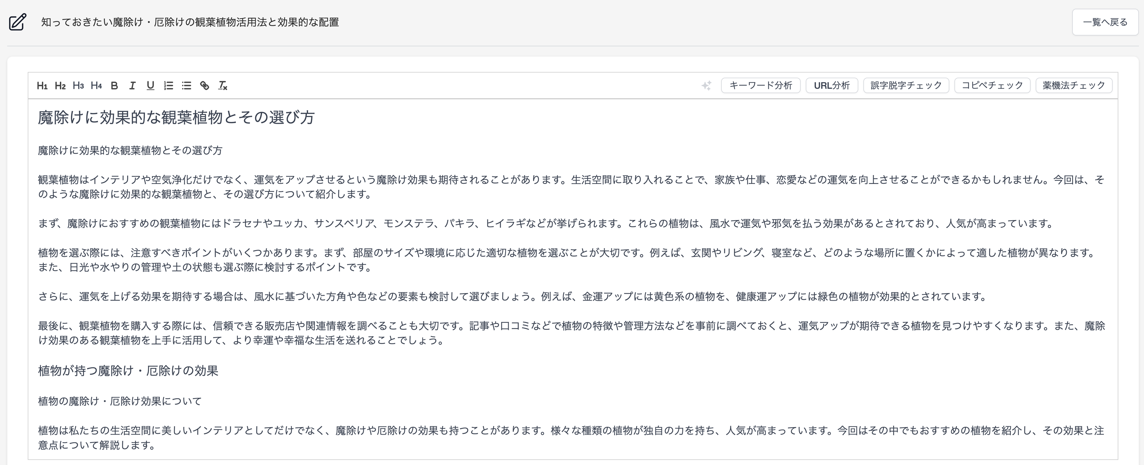 他にもSEOに強い文章を生成するための以下の機能を有しております。