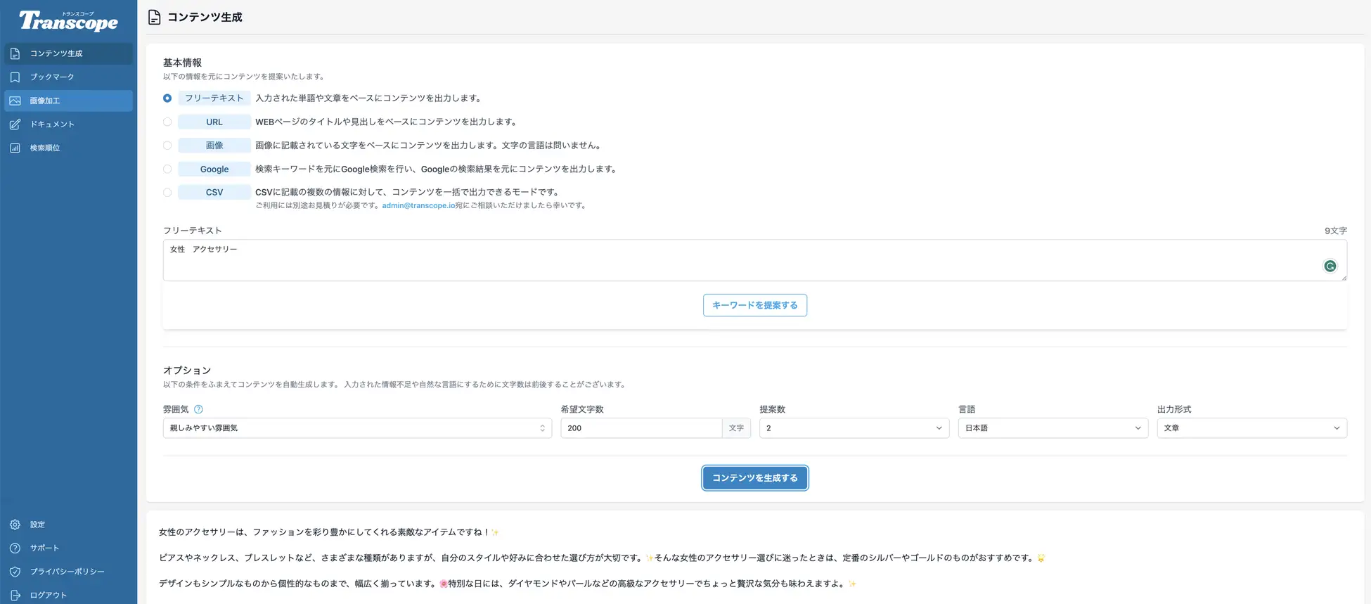 AIコピーライティングツール「Transcope(トランスコープ)」の企画・運営