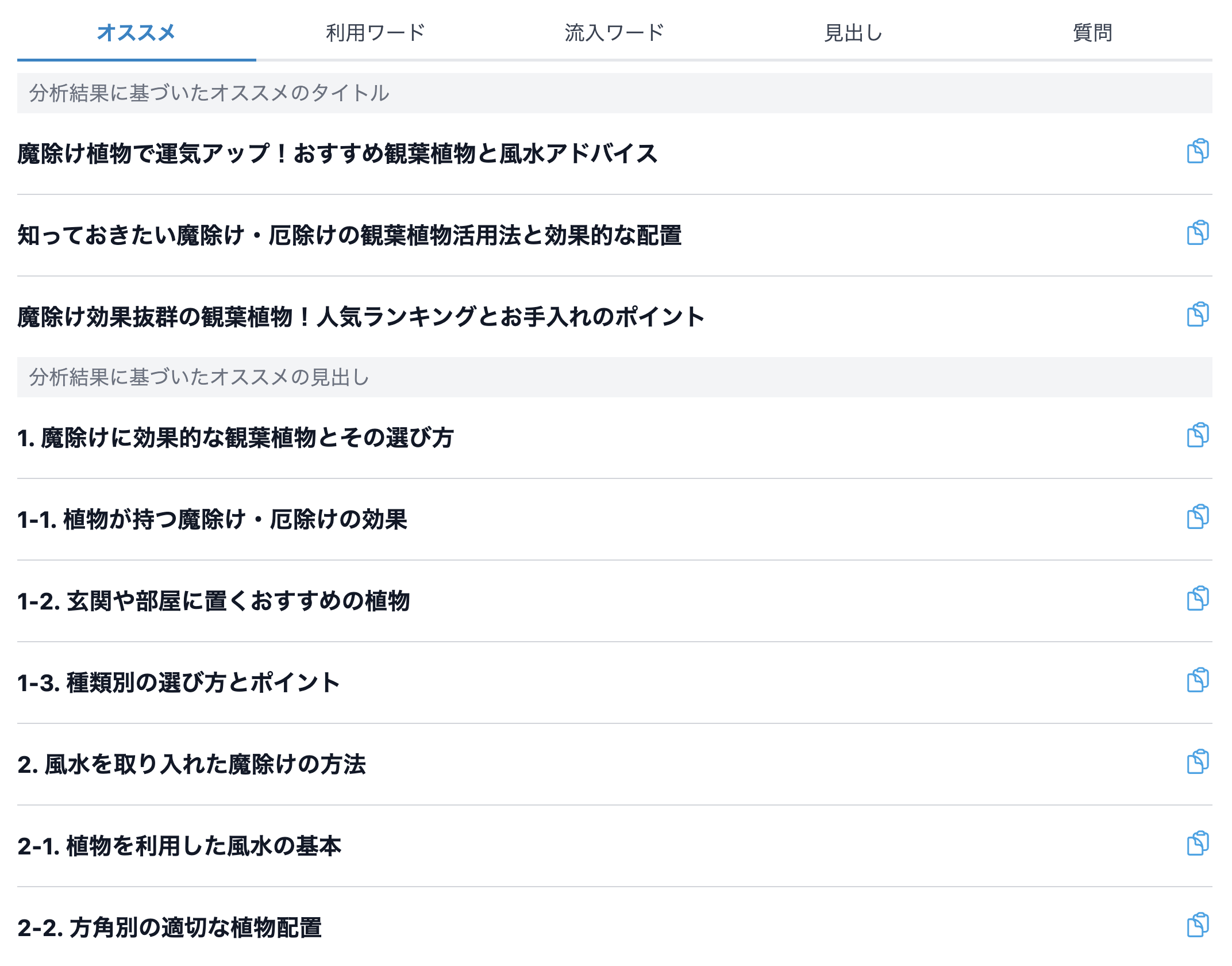 分析が完了すると、SEOに最適なタイトルと見出しがTranscopeより提案されます。