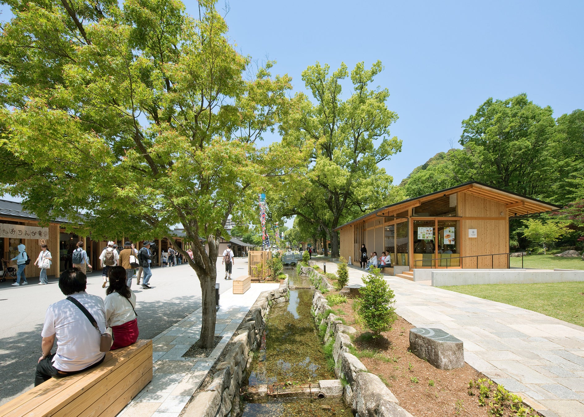 本施設は、国内外の観光客や地域住民の方々の観光・周遊の拠点でありながら、豊かな日常を彩る賑わいの拠点となる施設を目指して4/26(土)にグランドオープンしました。7棟の木造平屋建ての建物に、食べ歩きも楽しめる岐阜の地域食材を使ったお店、地元の文化を感じられるお店等、地域の良さを感じられる11店舗を誘致し、賑わいを創出します。