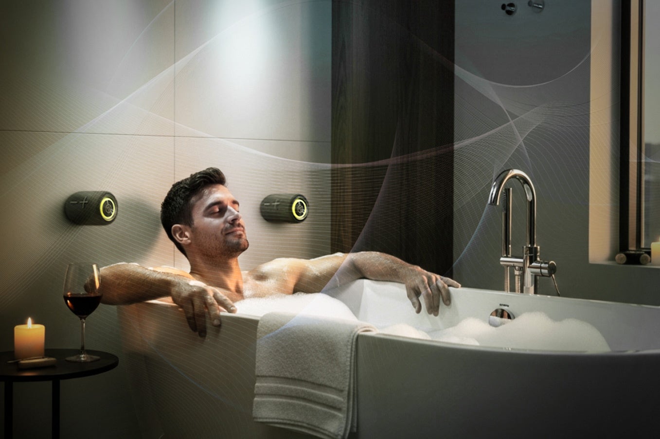 強力な磁石が底面に内蔵されているため、お風呂場の壁にピタッと吸着させることができます。バスタイムを快適な音楽空間に変え、リラックスした時間をお楽しみください。