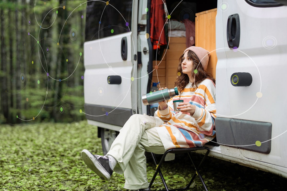 テーブルがなくても、置き場所に困ることもありません。キャンプや車中泊など、あなたのアウトドアシーンを音楽で満たし、もっと自由に、もっと快適に。好きな場所で、お気に入りのサウンドを楽しもう!