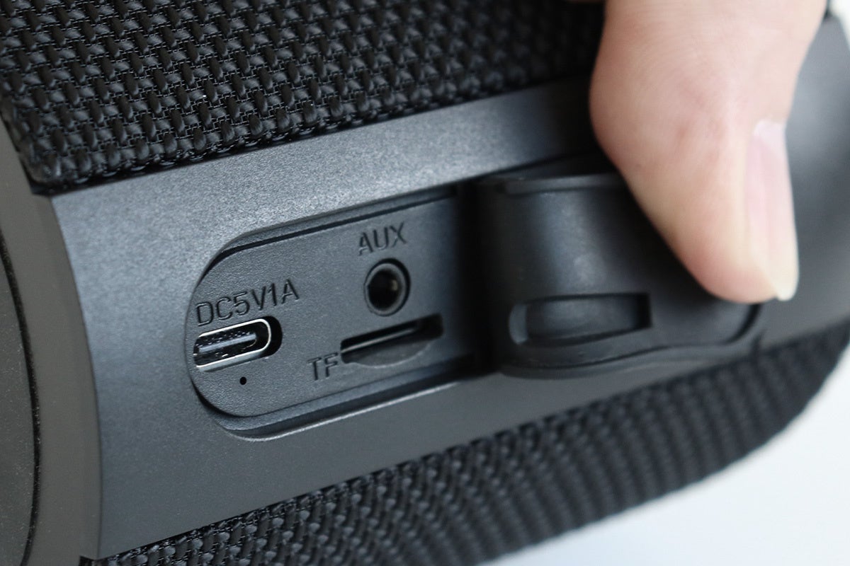 ポータブルスピーカーとしてはよく見るこの長細い形状。