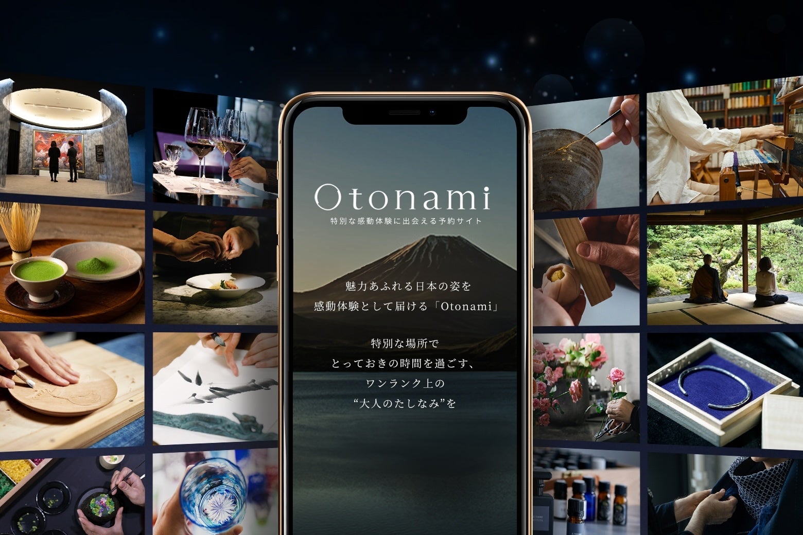 「Otonami」は、大人のための非日常体験を提供しています。特別な場所で、ワンランク上の“大人のたしなみ”を感じながら、日本の本当に価値ある魅力と出会う感動をお届けしています。