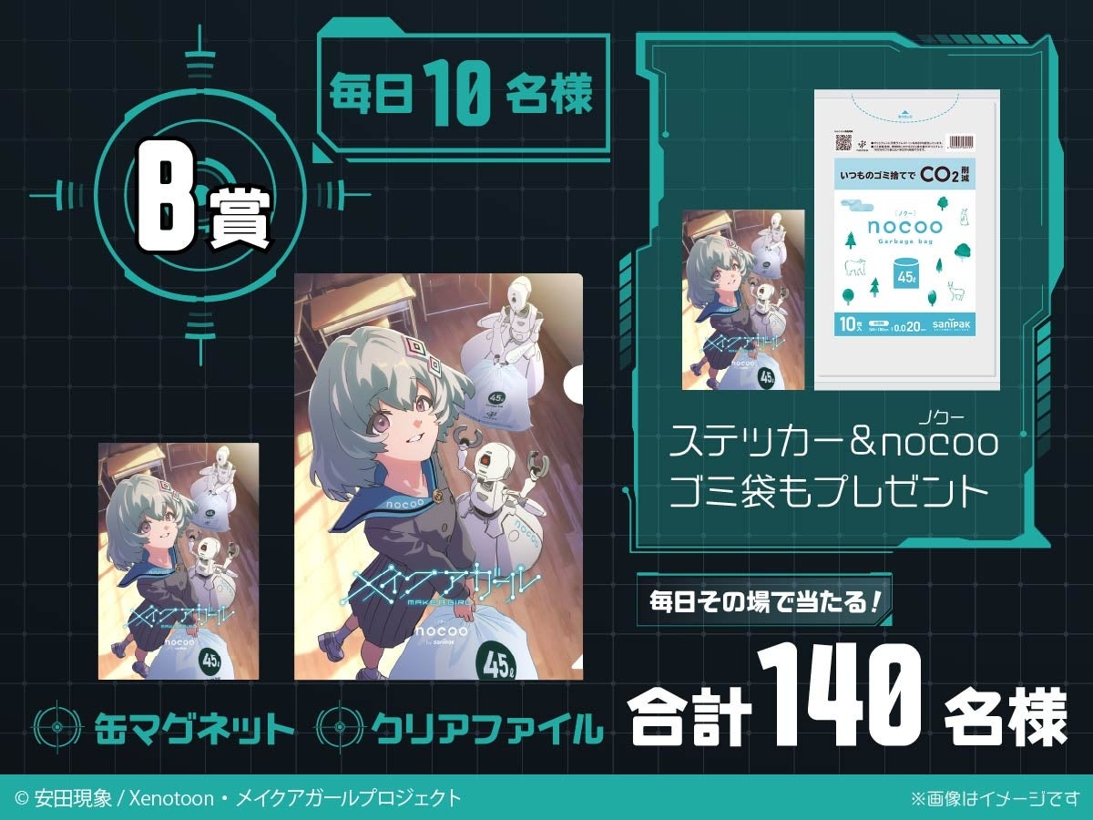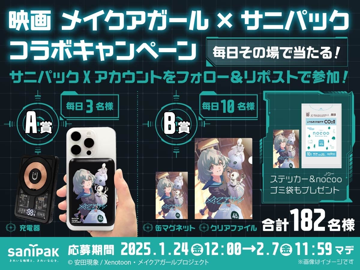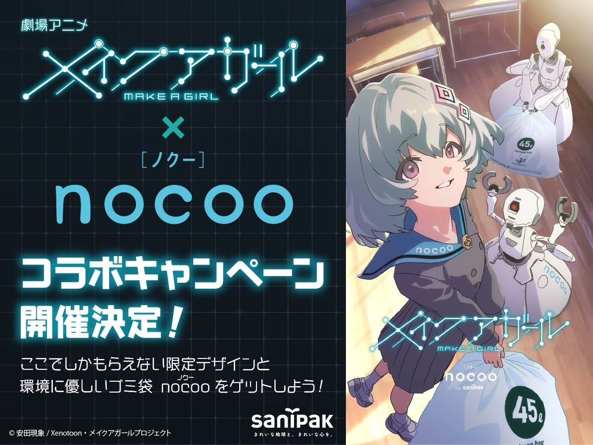 日本サニパック株式会社(本社:東京都渋谷区、代表取締役社長:井上充治、以下 サニパック)は、YouTubeやTiktokなどのSNS総フォロワー数600万人超を誇る大人気アニメーション作家・安田現象の初監督劇場長編アニメーション「メイクアガール」と環境に優しいゴミ袋「nocoo(ノクー)」のコラボキャンペーンを2025年1月24日(金)から開催いたします。