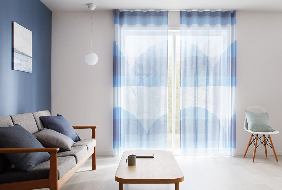 再生糸100%使用でありながら、天然繊維のような仕上がりのドレープ&シアーはナチュラルなインテリアに最適