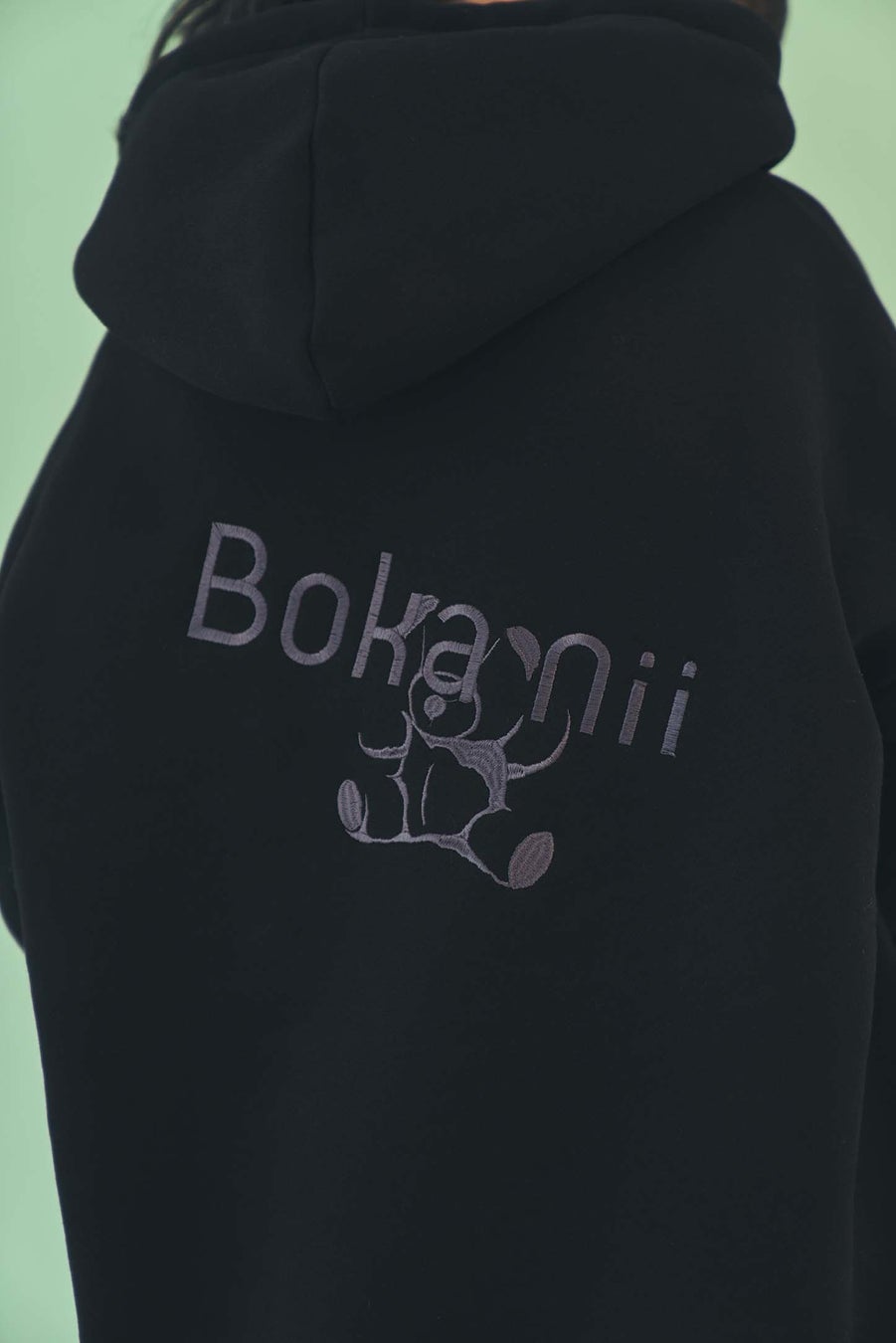Boka nii bearのオリジナルワッペンを全面にあしらい、バックには大胆に刺繍を施しました。