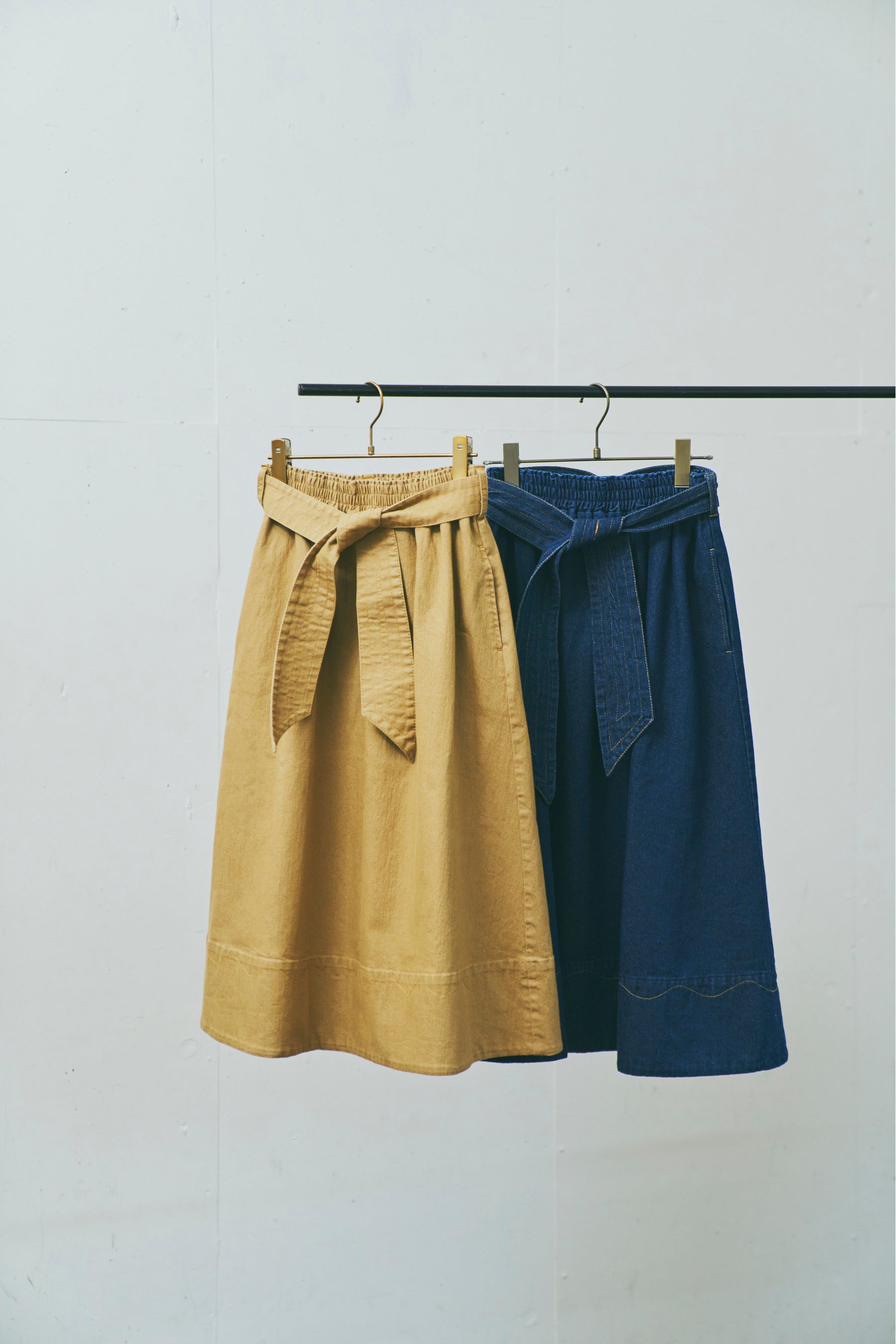 ウエスト部分のリボンと裾にあしらったウェーブステッチがポイントのスカート。