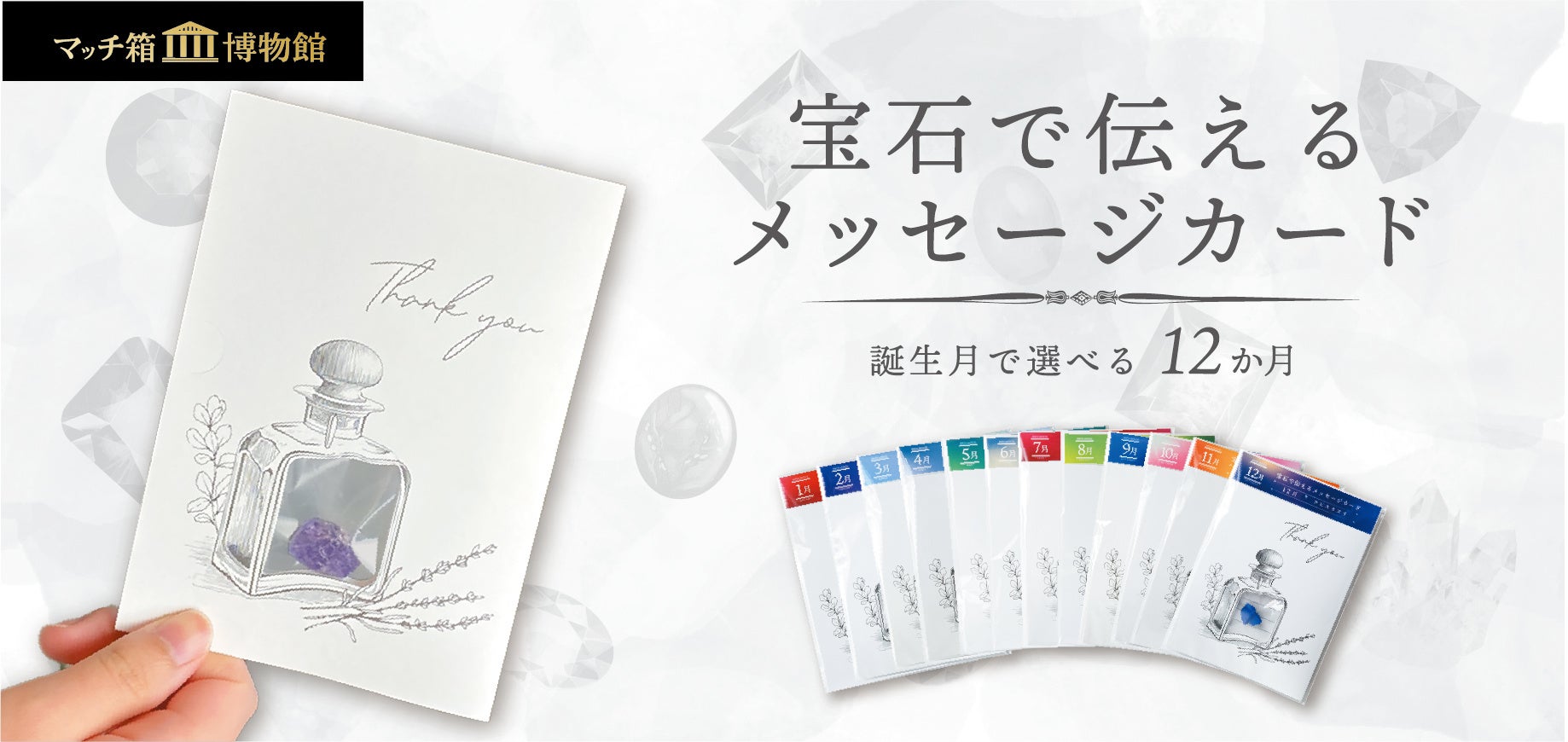 マッチ箱博物館が贈る彩り豊かな商品が新発売。「宝石で伝えるメッセージカード」と「標本リング」で本物の鉱物をさらに身近に