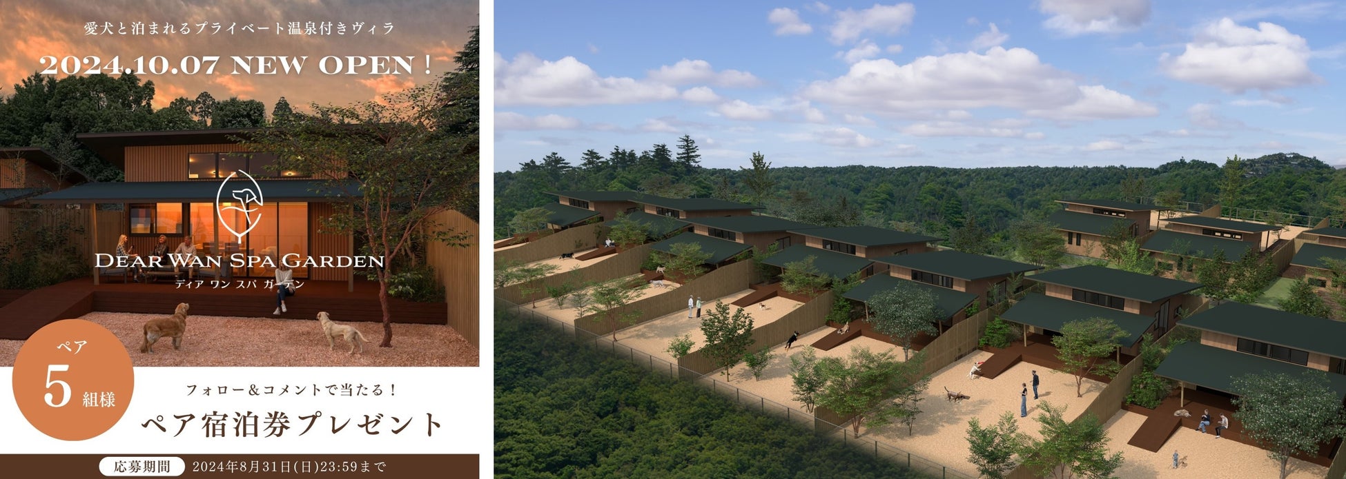 愛犬と泊まれるプライベート温泉付きの宿泊エリアのオープン・予約好調を記念し、 「Dear Wan Spa Garden」宿泊券 SNSプレゼントキャンペーン開催