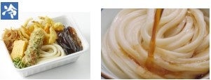 定番をはじめ昨年の販売時も人気だった、ぷりぷりのえび天に雪国まいたけ天がのった『えびとまいたけ天のうどん弁当』や、柚子風味の鶏天に大根おろしでさっぱりとした味わいの『鶏天おろしうどん弁当』が再登場!ふわふわのキス天がのった新作の『キス天うどん弁当』も登場します。