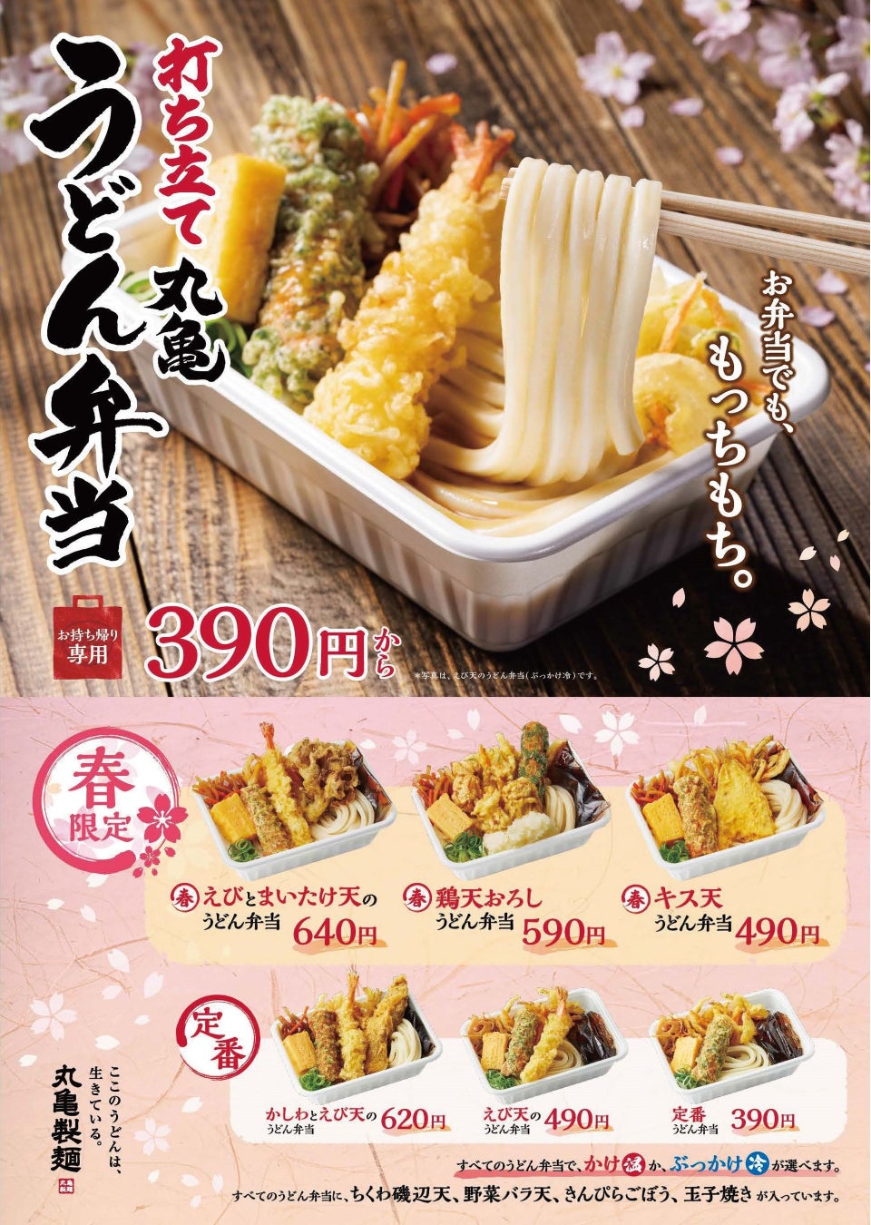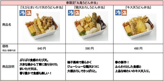 お弁当でも、もっちもち。“手づくり・できたて”が“いつでもどこでも” “春限定”も加わり、温・冷が選べて、発売史上最多の品揃えに「丸亀うどん弁当」が全12種類になり390円から