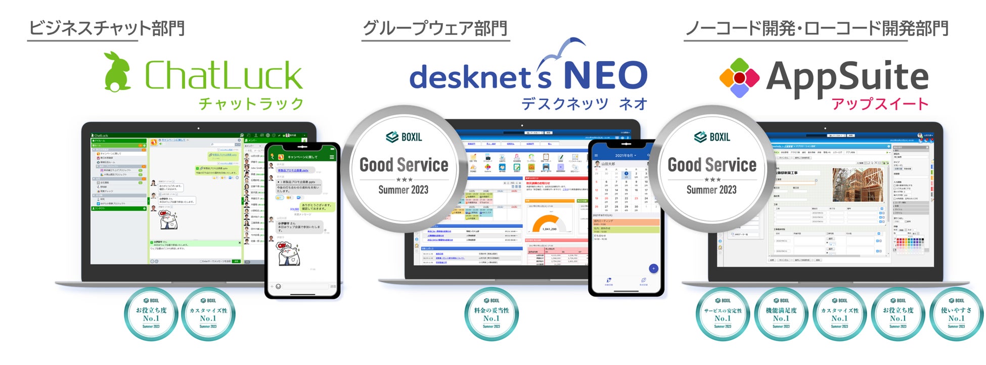 グループウェア『desknet's NEO』・ビジネスチャット『ChatLuck』・ノーコードアプリ作成ツール『AppSuite』が「BOXIL SaaS AWARD 2023」にてそれぞれ受賞
