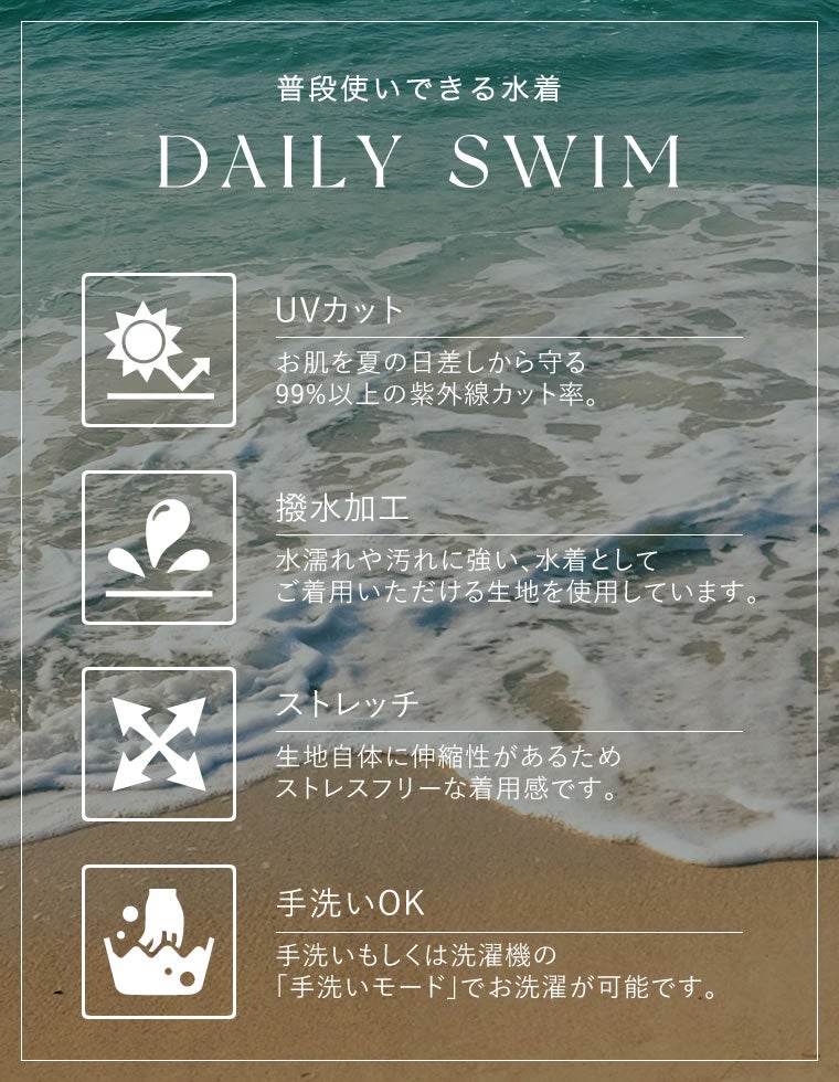 360℃どこから見ても美しく、大人が自信を持って着られる。お洋服を選ぶように、気軽に使えるDAILY SWIMシリーズ。サマーシーズンのお出かけを彩る水着や、旬のラッシュガードに注目です。