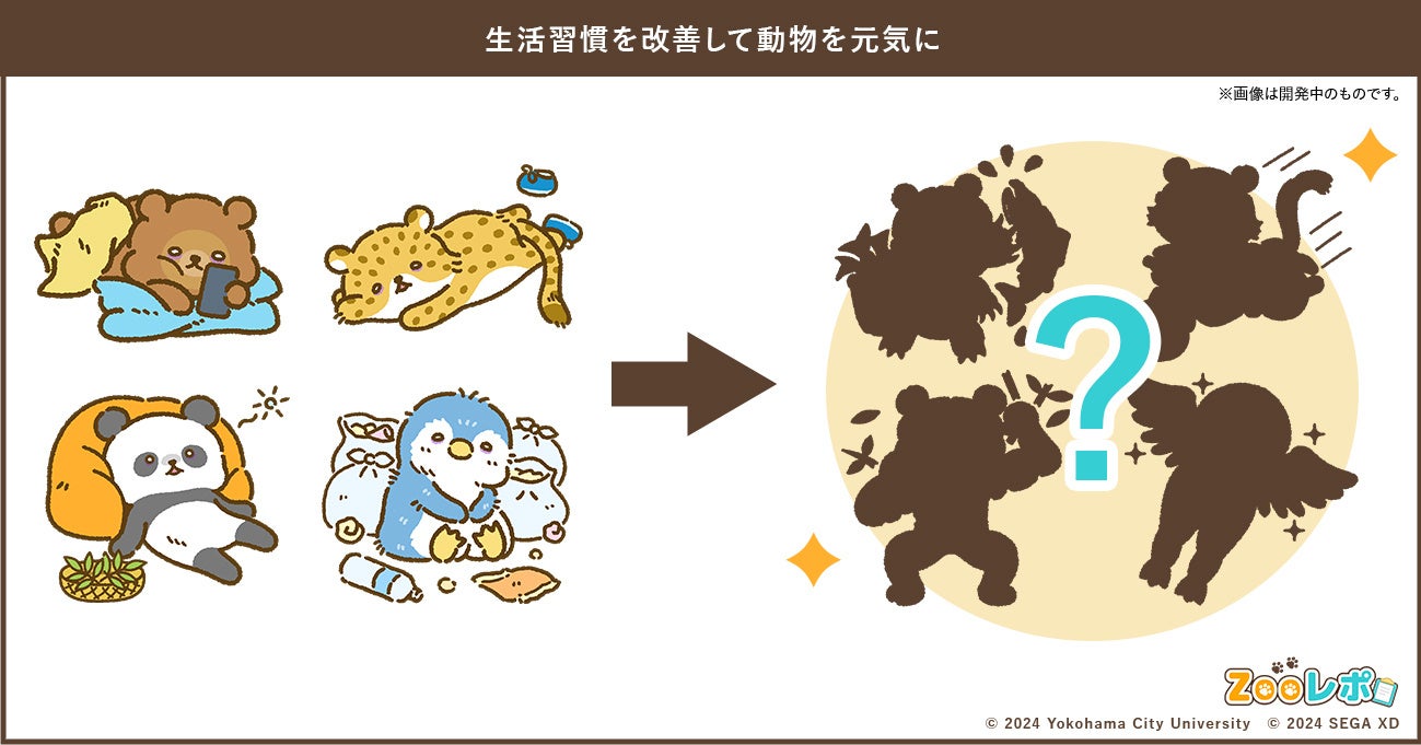 Minds1020Labがセガ エックスディーの協力のもとで開発した、動物園内の動物たちと共に自身の生活習慣を改善する育成型ゲームアプリ「Zooレポ」を使用し、生活改善に関する検証実験を実施します。動物は下記4種類で構成されています。