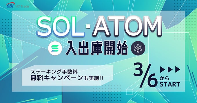 SBI VCトレード株式会社(本社:東京都港区、代表取締役社長:近藤 智彦、以下「当社」)は、2024年3月6日(水)より、ソラナ(SOL)、コスモス(ATOM)の入出庫サービスを開始することをお知らせいたします。