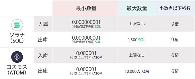 ソラナ(SOL)、コスモス(ATOM)入出庫サービス開始のお知らせ