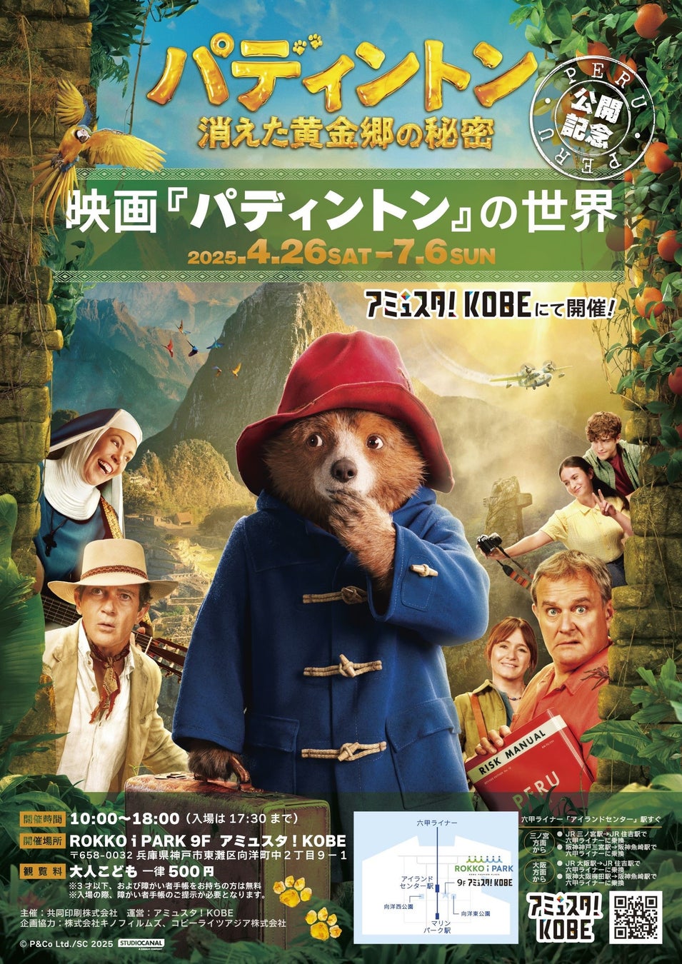 共同印刷株式会社(本社:東京都文京区、代表取締役社長:大橋輝臣、以下:当社)は、英国発の人気キャラクター「くまのパディントン」の実写映画シリーズ第3弾『パディントン 消えた黄金郷の秘密』(提供:木下グループ 配給:キノフィルムズ 2025年5月9日~)の公開に合わせ、「映画『パディントン』の世界」と銘打った体験型展示イベントを、4月26日(土)より神戸市ROKKO i PARK 9F アミュスタ!KOBEにて開催します。
