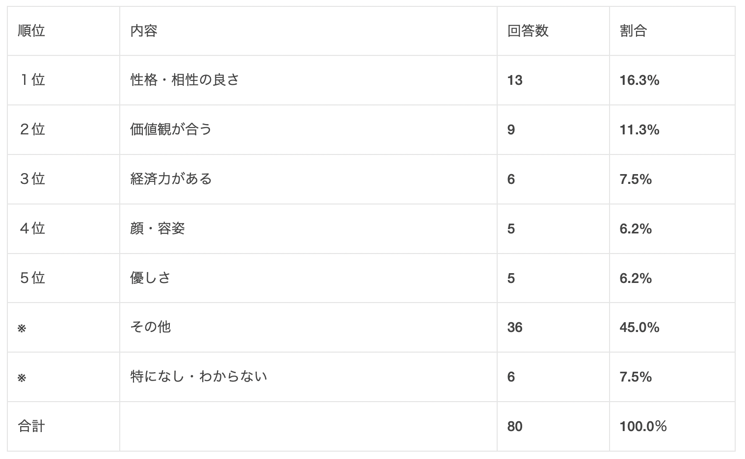 ●アンケート調査から分かる多くの男女が結婚相手に求めている条件は?