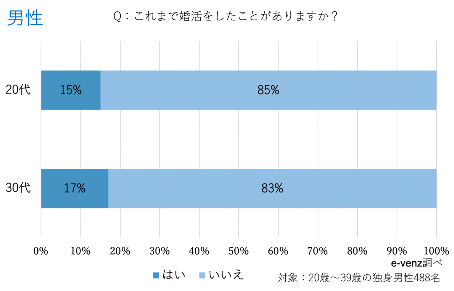 まずは、どれだけの男女が婚活をしたことがあるのかを調査しました。