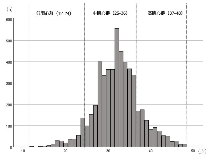 図表1. 健康関心度尺度(合計得点)のヒストグラム